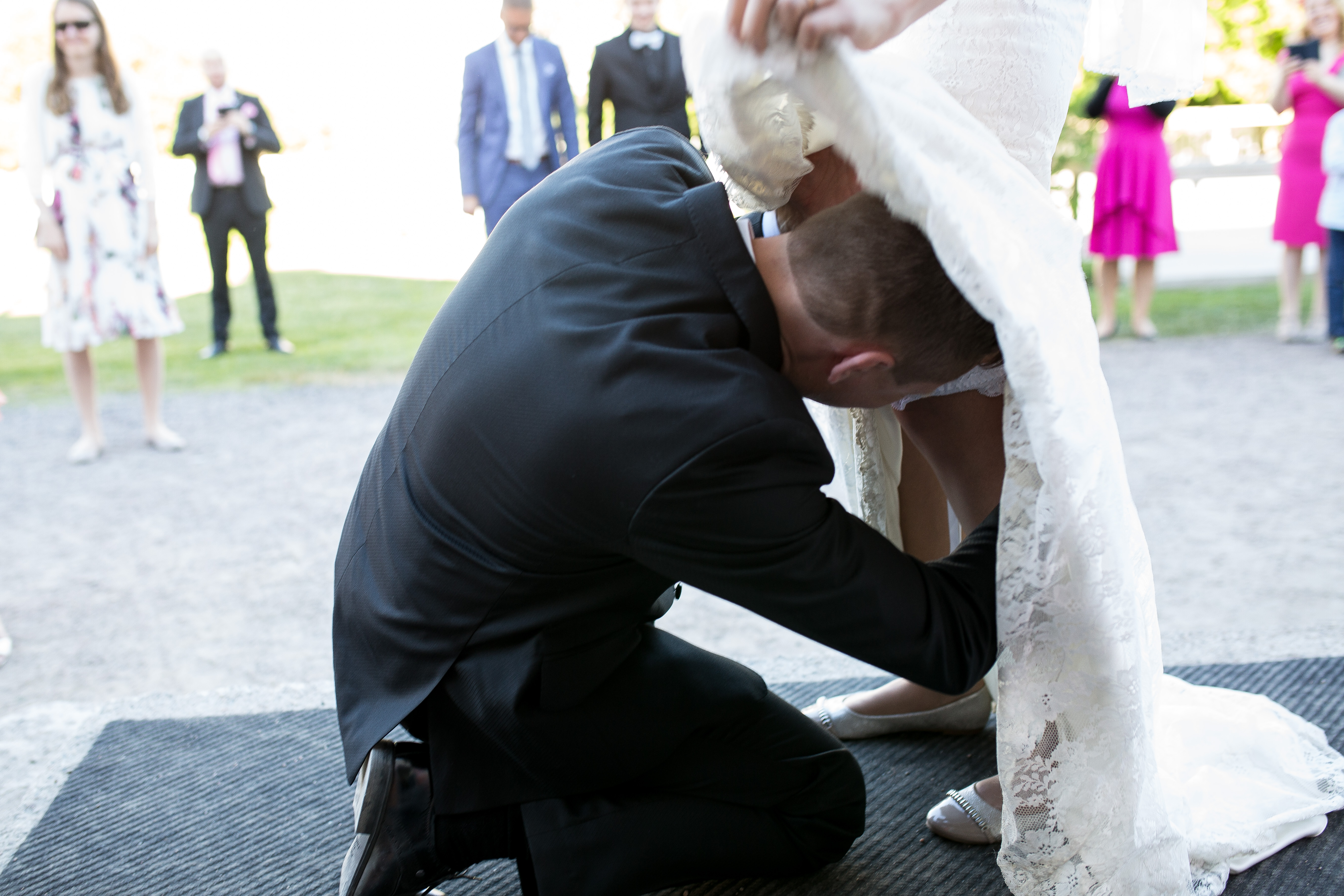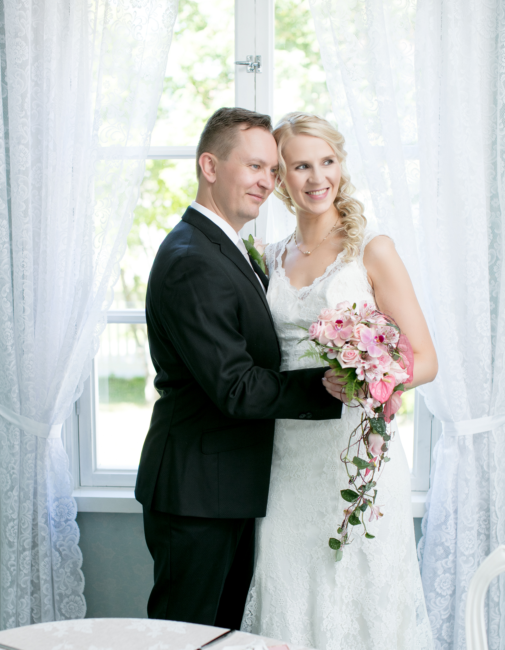 Hääjuhlaa vietettiin idyllisessä ja valoisan raikkaassa 1860-luvulla rakennetussa Alaruokasen talossa Rovaniemen keskustassa. Kuvasimme potretit upealla juhlapaikalla ennen vihkimistä. Jennan morsiuskuva sai kunniamaininnan Finnish Photo Awardsien Wedding-sarjassa keväällä 2019.