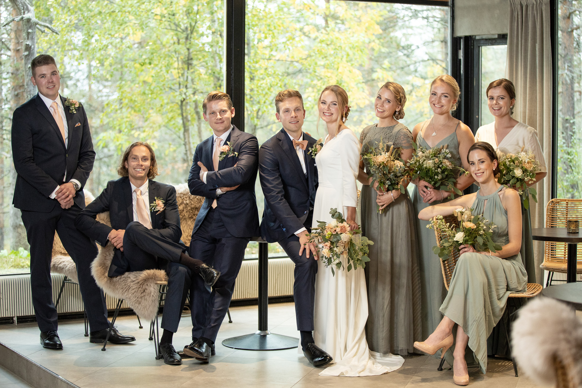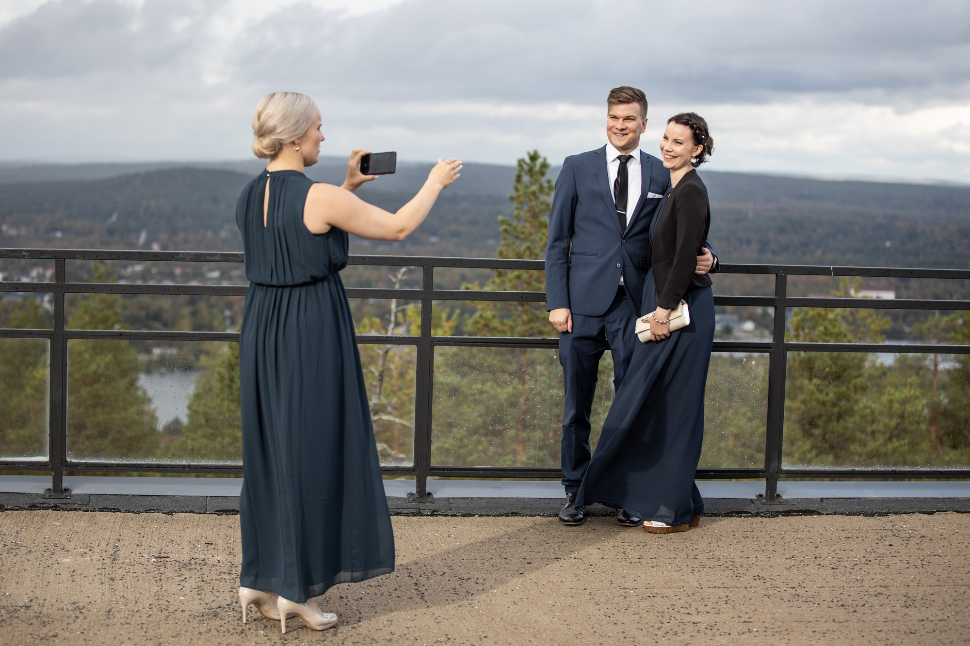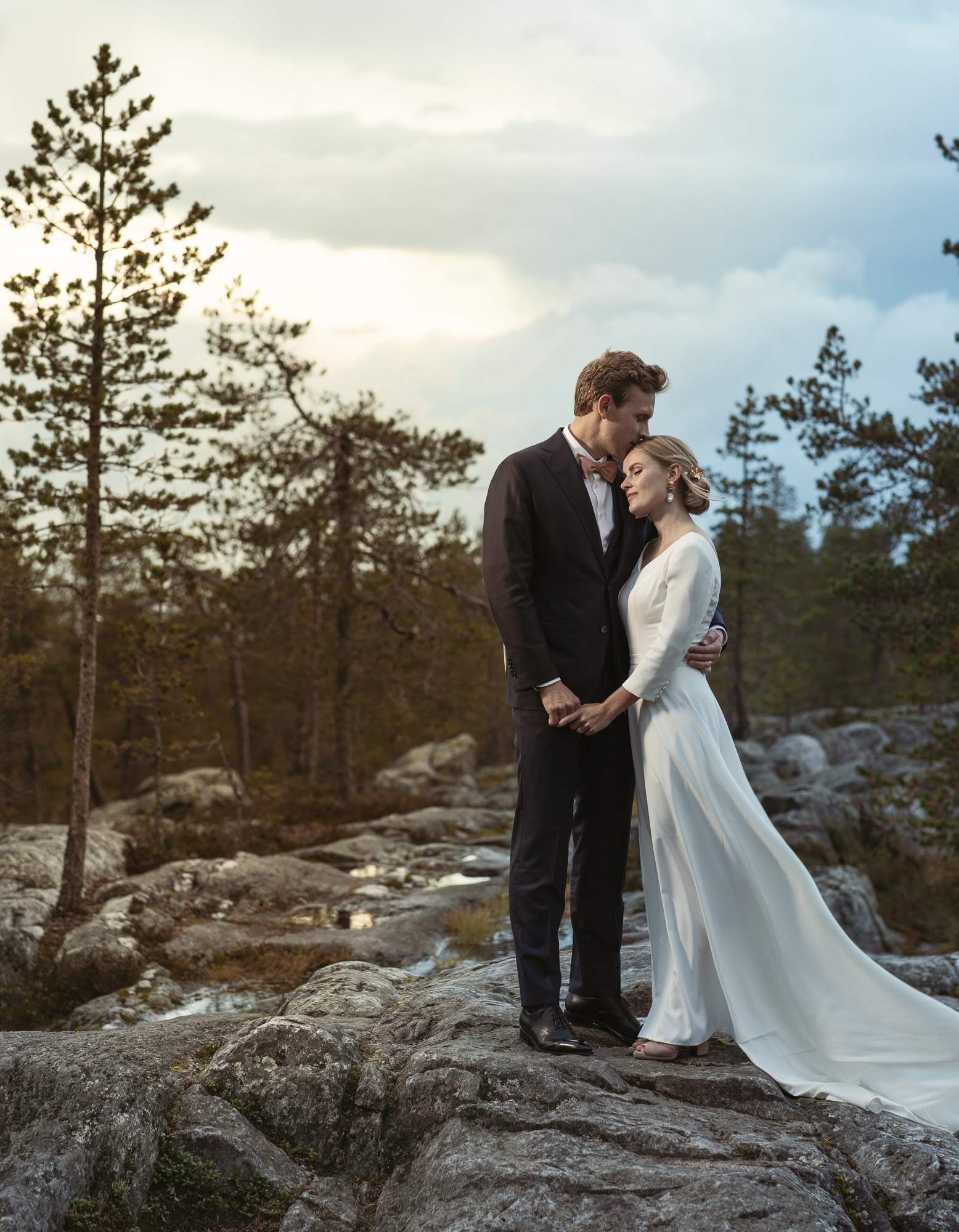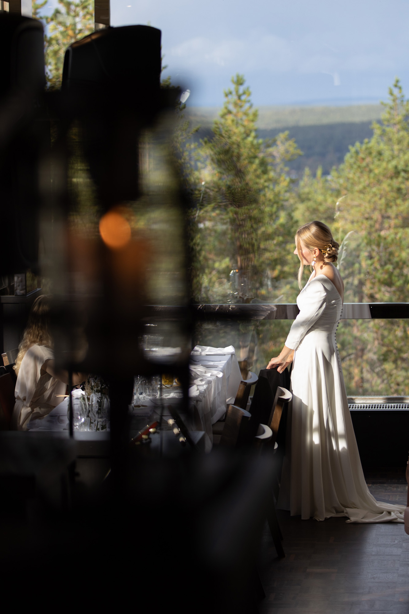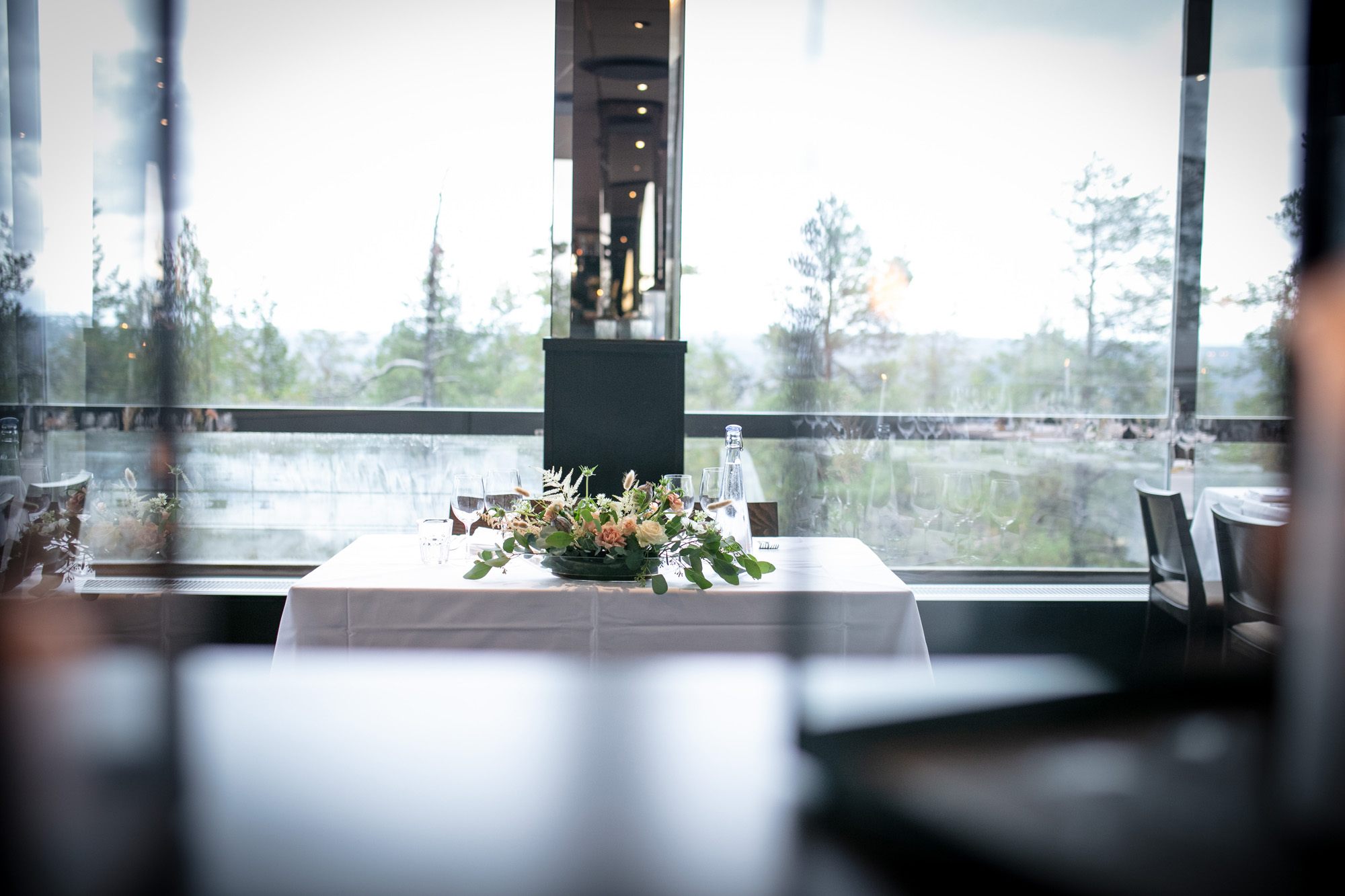Karoliinan ja Raulin päivän aloitimme kuvaamalla valmistautumisen tunnelmia kaasojen kanssa Arctic Light hotellilla. Päivä oli sateinen joten kuvasimme potretteja ennen vihkimistä Arktikumin sisätiloissa, josta oli sateen tauottua hyvä pistäytyä myös puistoalueella. Illalla teimme myös pikaisen potrettikuvauksen Ounasvaaralla juhlapaikkana olleen Sky Hotellin läheisyydessä. Vaikka satenen sää voi tuottaa enemmän järjestelyä kuvauksen suhteen, niin se kyllä kannattaa. Nimittäin juuri se sateen jälkeinen valo ja ilman utuinen raikkaus on niin upeaa ja tuo aivan omanlaista herkkyyttä kuviin.