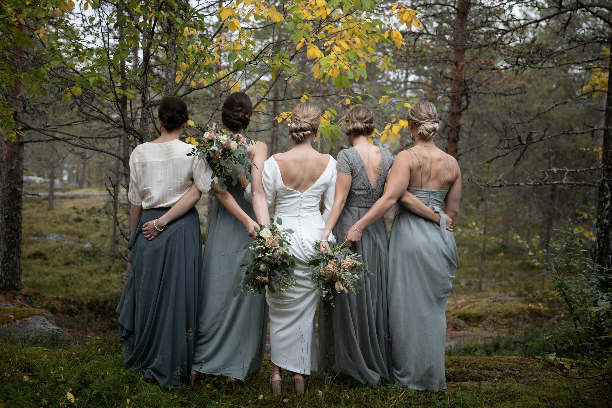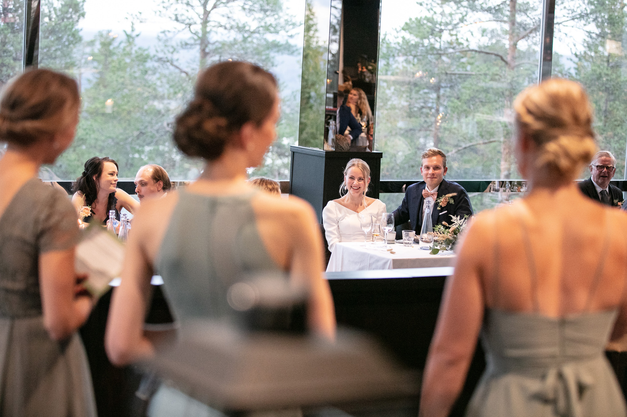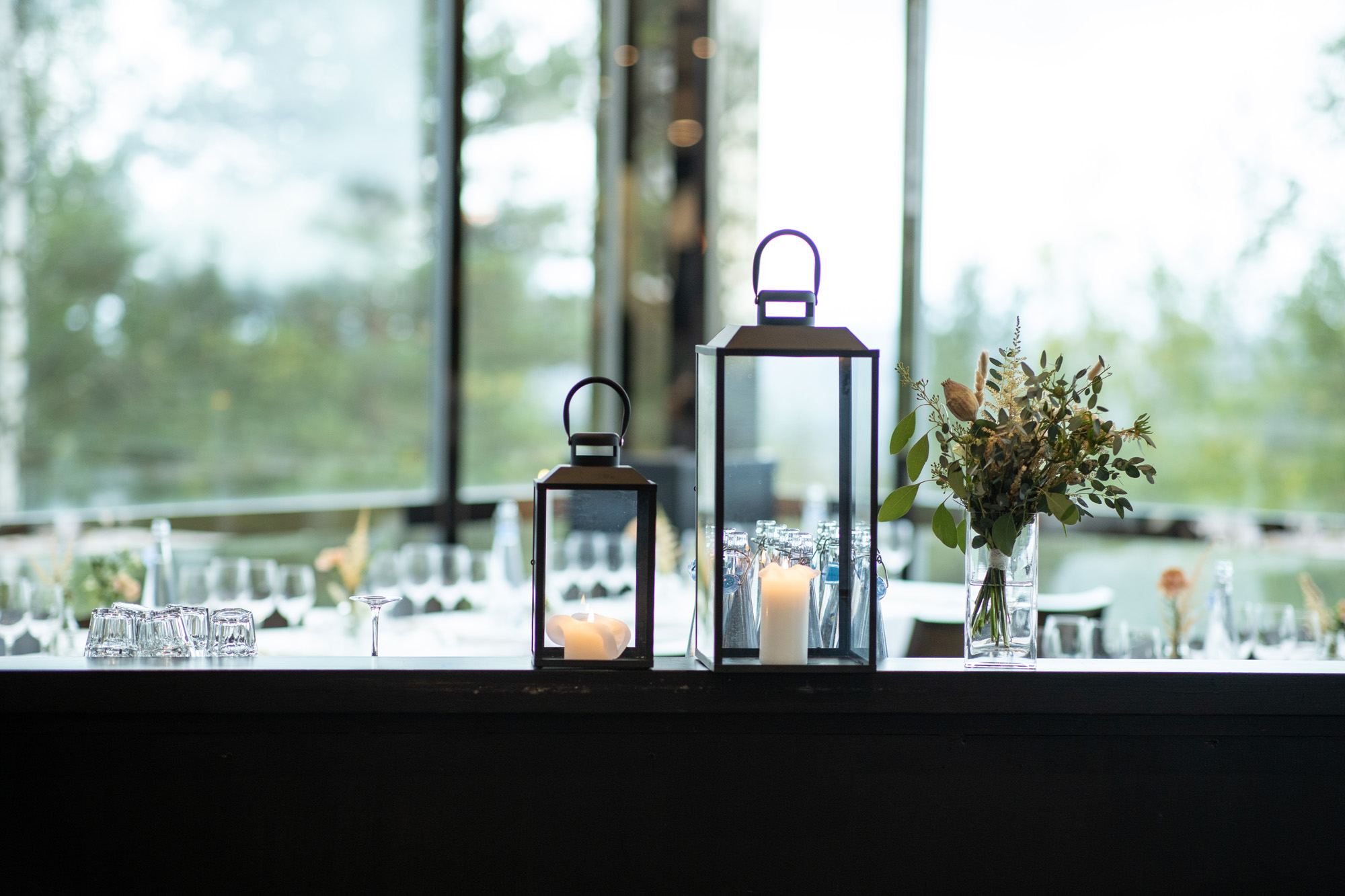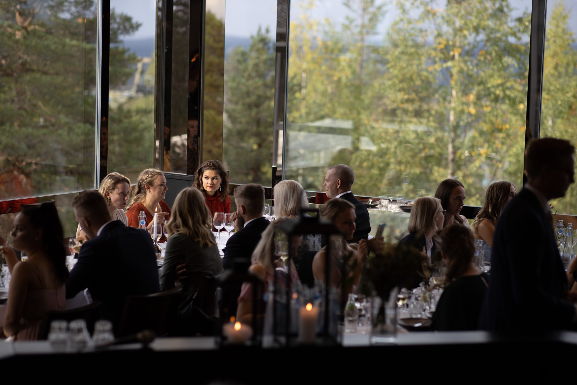 Karoliinan ja Raulin päivän aloitimme kuvaamalla valmistautumisen tunnelmia kaasojen kanssa Arctic Light hotellilla. Päivä oli sateinen joten kuvasimme potretteja ennen vihkimistä Arktikumin sisätiloissa, josta oli sateen tauottua hyvä pistäytyä myös puistoalueella. Illalla teimme myös pikaisen potrettikuvauksen Ounasvaaralla juhlapaikkana olleen Sky Hotellin läheisyydessä. Vaikka satenen sää voi tuottaa enemmän järjestelyä kuvauksen suhteen, niin se kyllä kannattaa. Nimittäin juuri se sateen jälkeinen valo ja ilman utuinen raikkaus on niin upeaa ja tuo aivan omanlaista herkkyyttä kuviin.