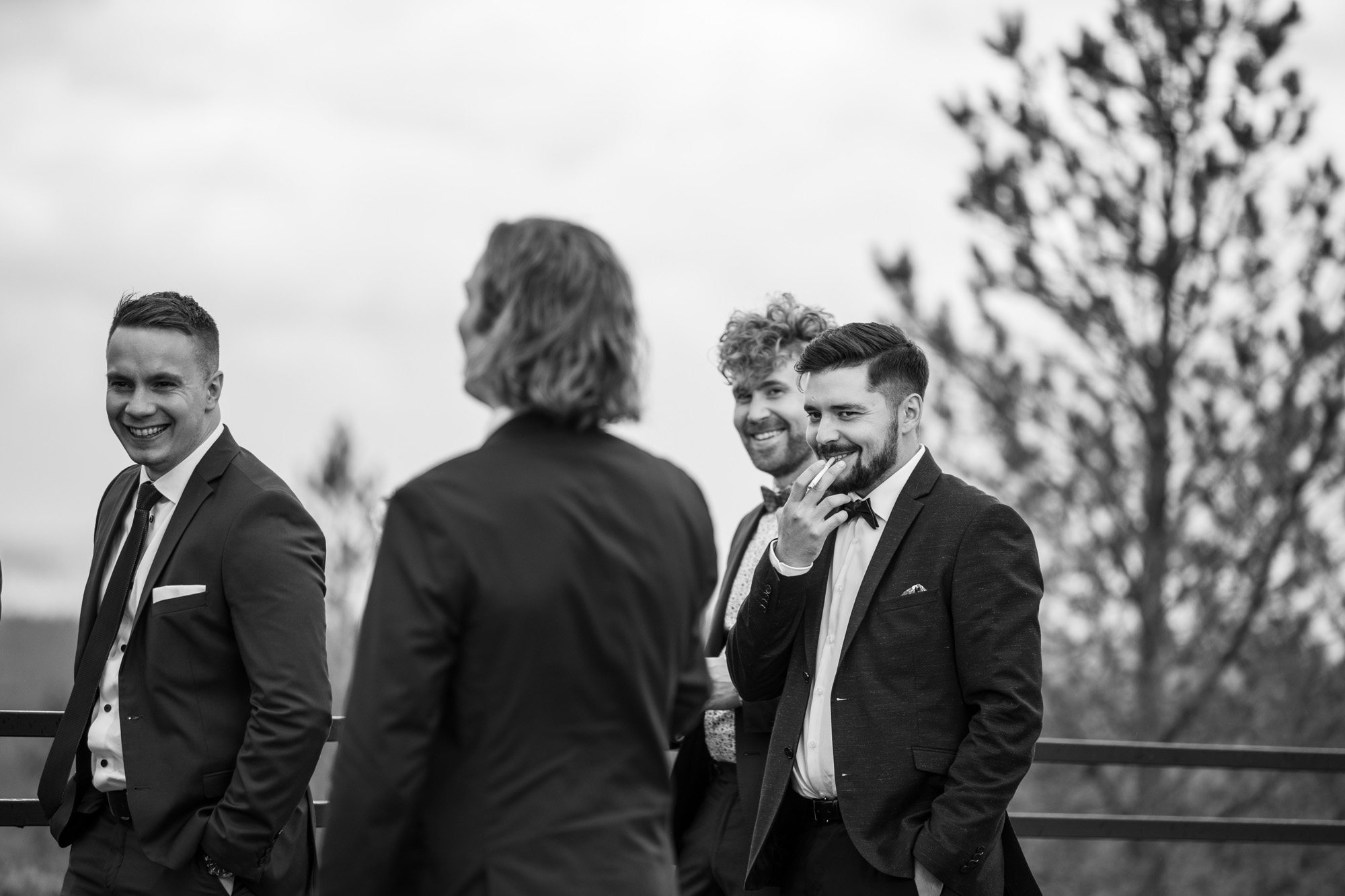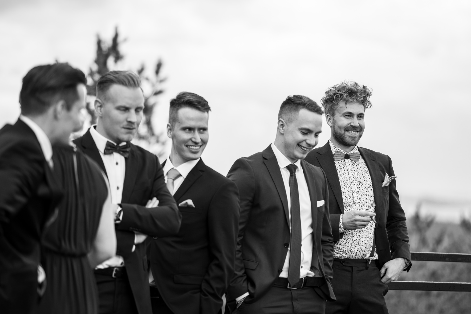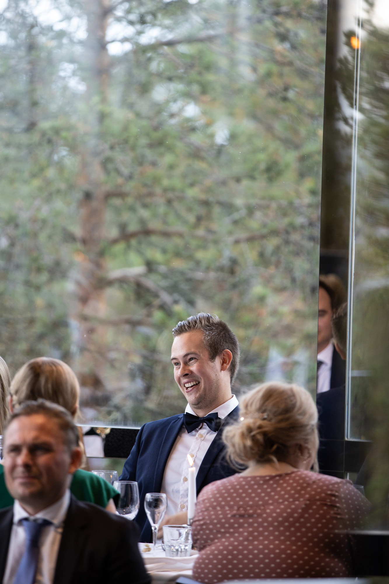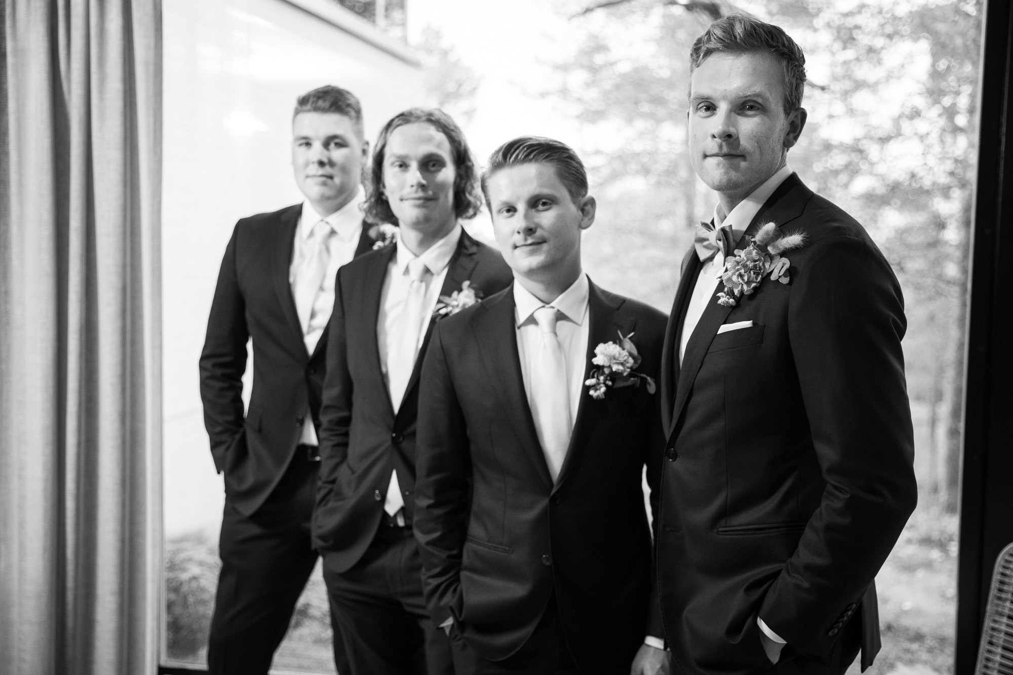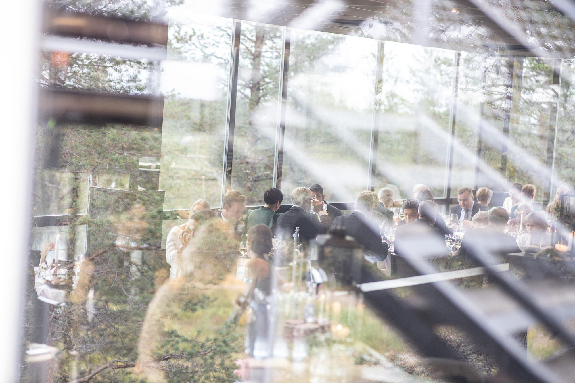Karoliinan ja Raulin päivän aloitimme kuvaamalla valmistautumisen tunnelmia kaasojen kanssa Arctic Light hotellilla. Päivä oli sateinen joten kuvasimme potretteja ennen vihkimistä Arktikumin sisätiloissa, josta oli sateen tauottua hyvä pistäytyä myös puistoalueella. Illalla teimme myös pikaisen potrettikuvauksen Ounasvaaralla juhlapaikkana olleen Sky Hotellin läheisyydessä. Vaikka satenen sää voi tuottaa enemmän järjestelyä kuvauksen suhteen, niin se kyllä kannattaa. Nimittäin juuri se sateen jälkeinen valo ja ilman utuinen raikkaus on niin upeaa ja tuo aivan omanlaista herkkyyttä kuviin.