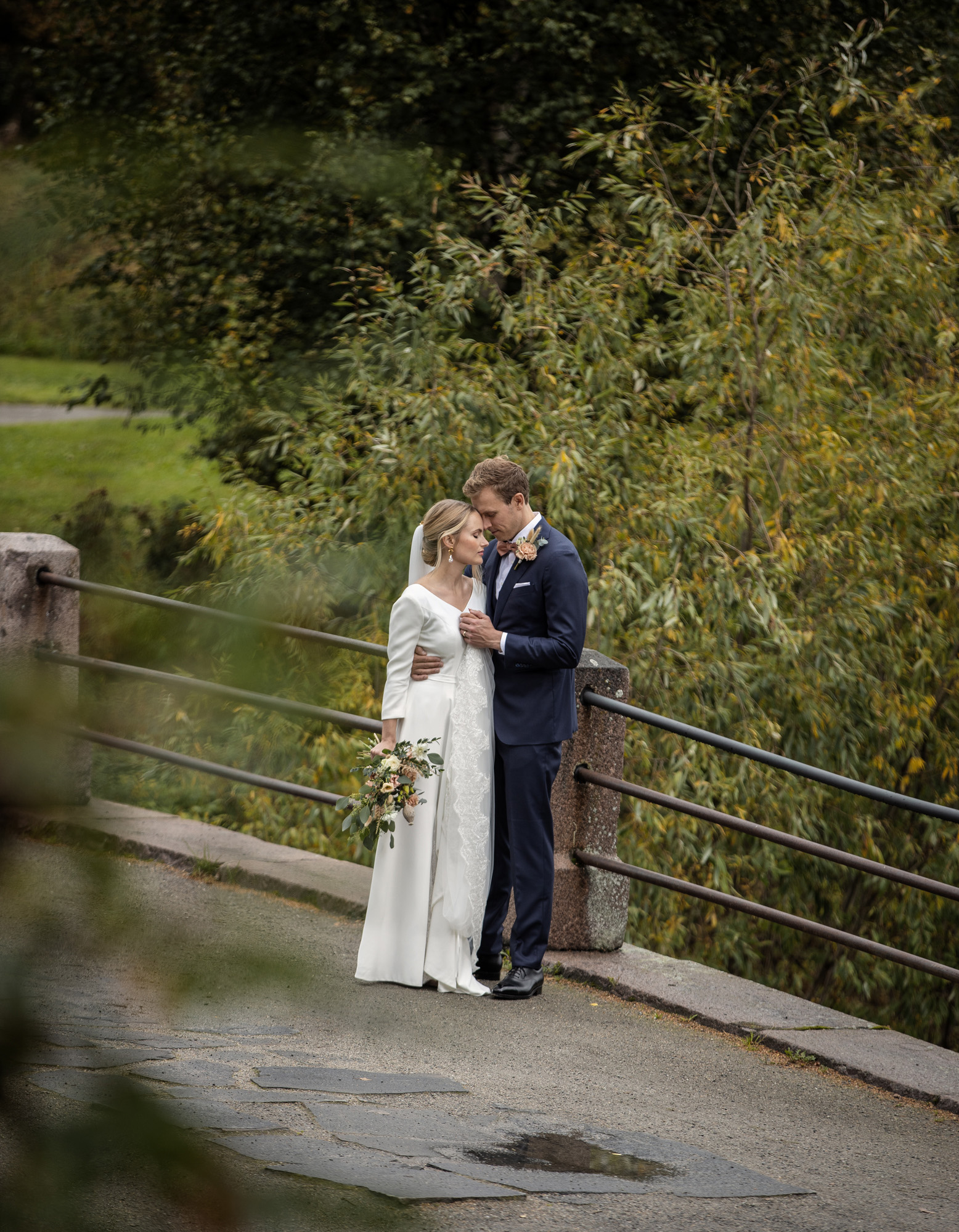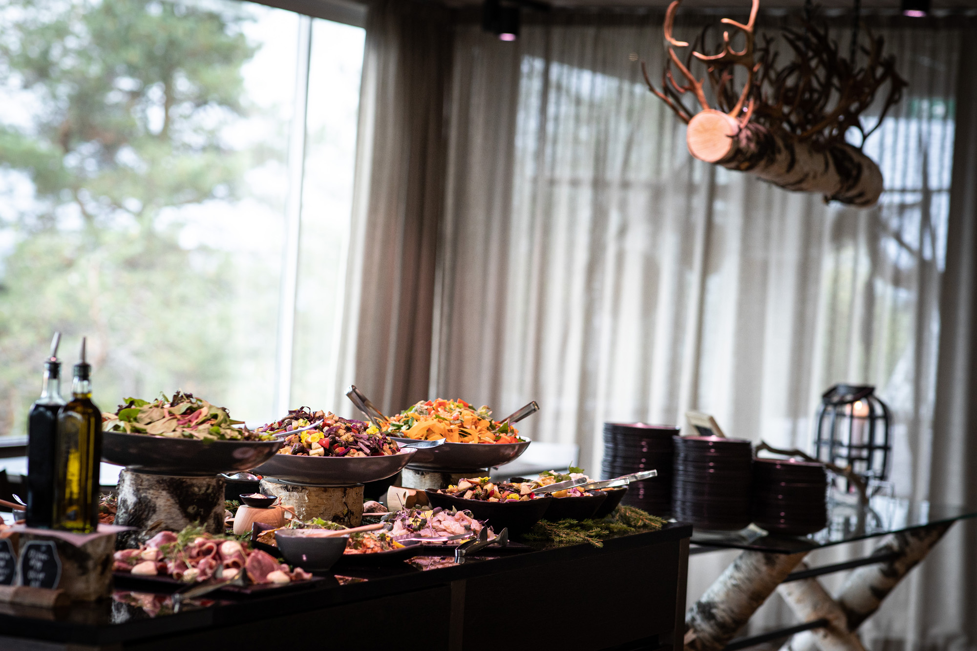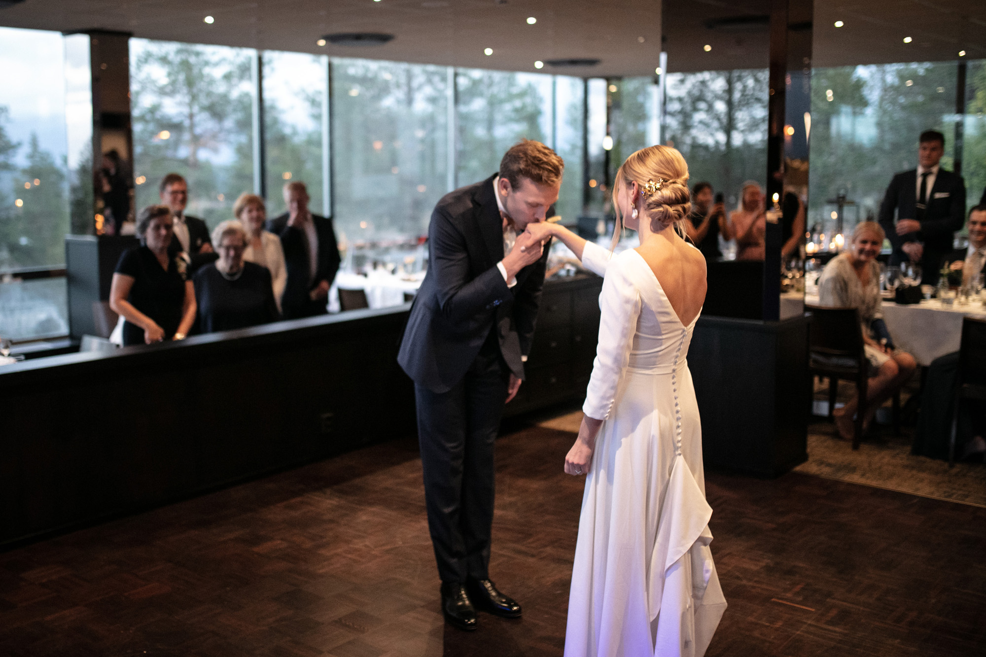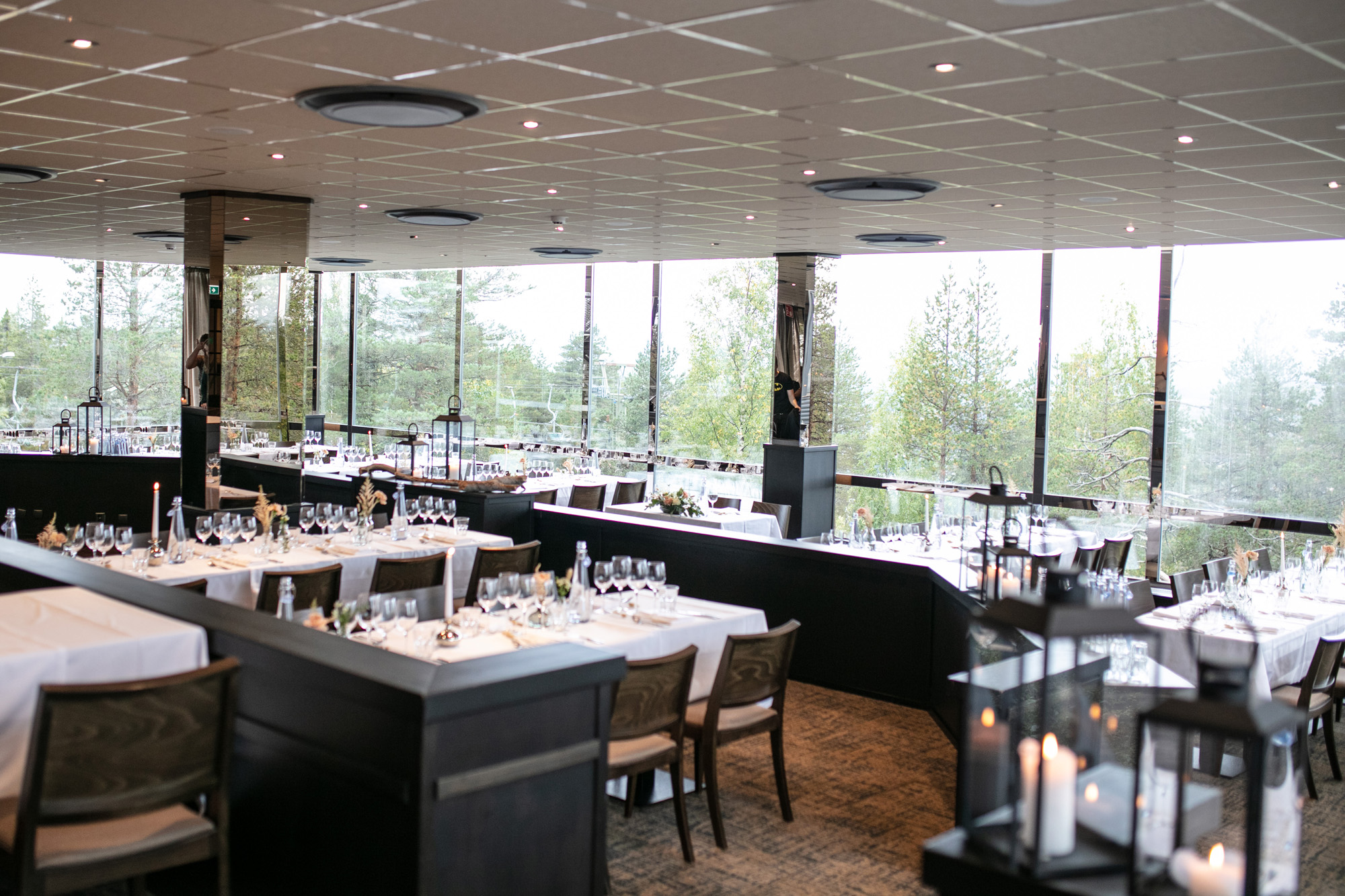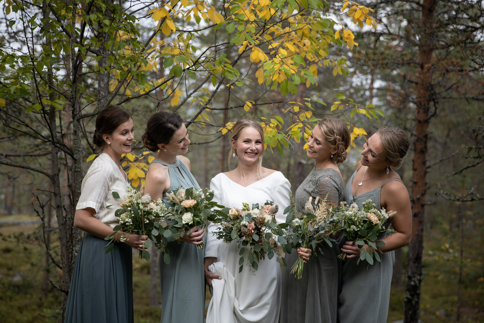 Karoliinan ja Raulin päivän aloitimme kuvaamalla valmistautumisen tunnelmia kaasojen kanssa Arctic Light hotellilla. Päivä oli sateinen joten kuvasimme potretteja ennen vihkimistä Arktikumin sisätiloissa, josta oli sateen tauottua hyvä pistäytyä myös puistoalueella. Illalla teimme myös pikaisen potrettikuvauksen Ounasvaaralla juhlapaikkana olleen Sky Hotellin läheisyydessä. Vaikka satenen sää voi tuottaa enemmän järjestelyä kuvauksen suhteen, niin se kyllä kannattaa. Nimittäin juuri se sateen jälkeinen valo ja ilman utuinen raikkaus on niin upeaa ja tuo aivan omanlaista herkkyyttä kuviin.
