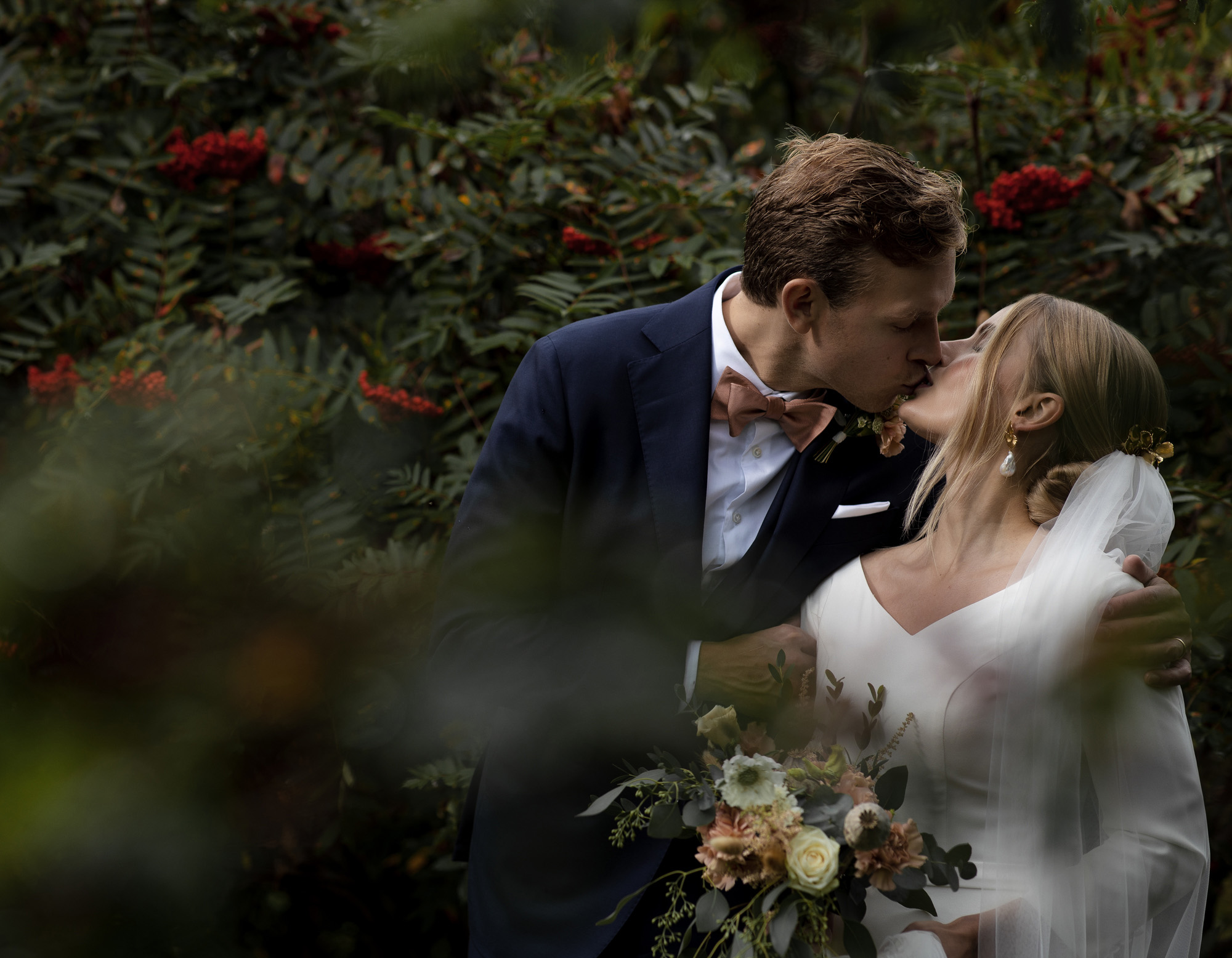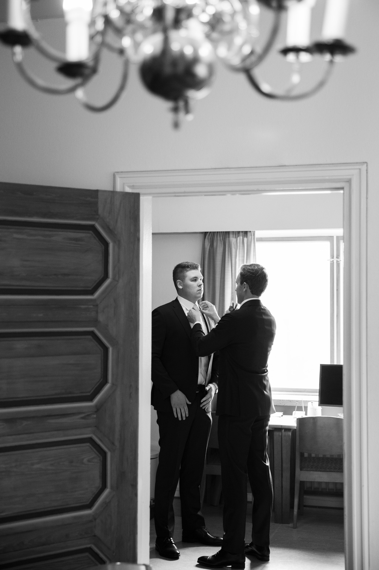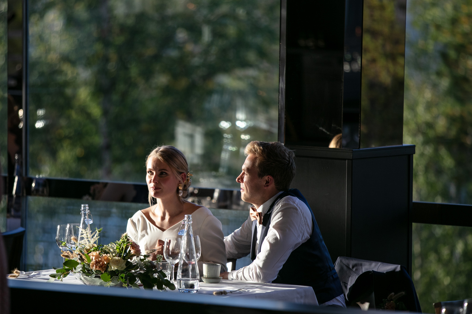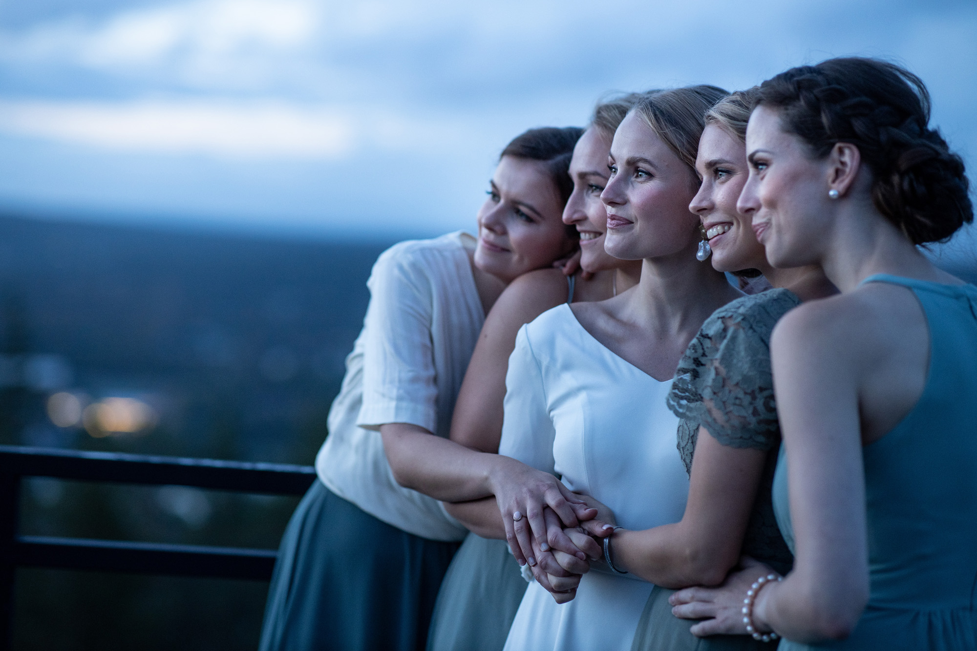 Karoliinan ja Raulin päivän aloitimme kuvaamalla valmistautumisen tunnelmia kaasojen kanssa Arctic Light hotellilla. Päivä oli sateinen joten kuvasimme potretteja ennen vihkimistä Arktikumin sisätiloissa, josta oli sateen tauottua hyvä pistäytyä myös puistoalueella. Illalla teimme myös pikaisen potrettikuvauksen Ounasvaaralla juhlapaikkana olleen Sky Hotellin läheisyydessä. Vaikka satenen sää voi tuottaa enemmän järjestelyä kuvauksen suhteen, niin se kyllä kannattaa. Nimittäin juuri se sateen jälkeinen valo ja ilman utuinen raikkaus on niin upeaa ja tuo aivan omanlaista herkkyyttä kuviin.
