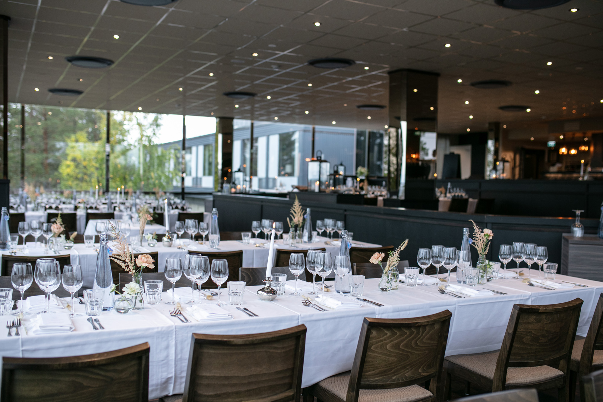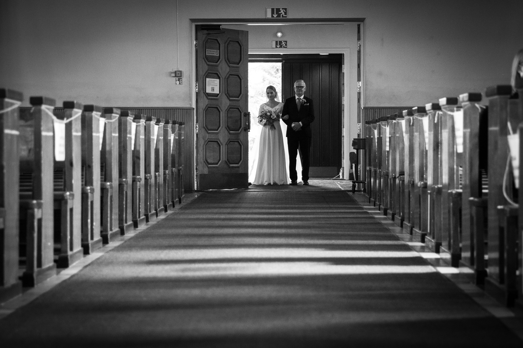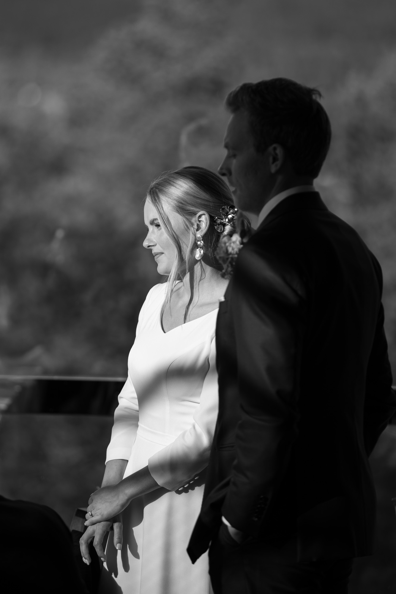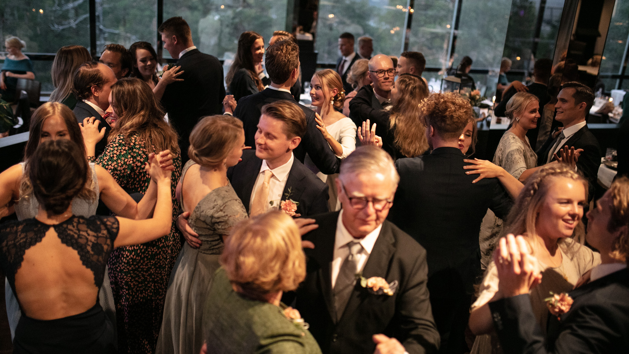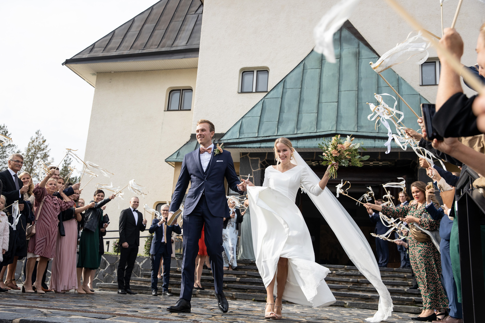 Karoliinan ja Raulin päivän aloitimme kuvaamalla valmistautumisen tunnelmia kaasojen kanssa Arctic Light hotellilla. Päivä oli sateinen joten kuvasimme potretteja ennen vihkimistä Arktikumin sisätiloissa, josta oli sateen tauottua hyvä pistäytyä myös puistoalueella. Illalla teimme myös pikaisen potrettikuvauksen Ounasvaaralla juhlapaikkana olleen Sky Hotellin läheisyydessä. Vaikka satenen sää voi tuottaa enemmän järjestelyä kuvauksen suhteen, niin se kyllä kannattaa. Nimittäin juuri se sateen jälkeinen valo ja ilman utuinen raikkaus on niin upeaa ja tuo aivan omanlaista herkkyyttä kuviin.