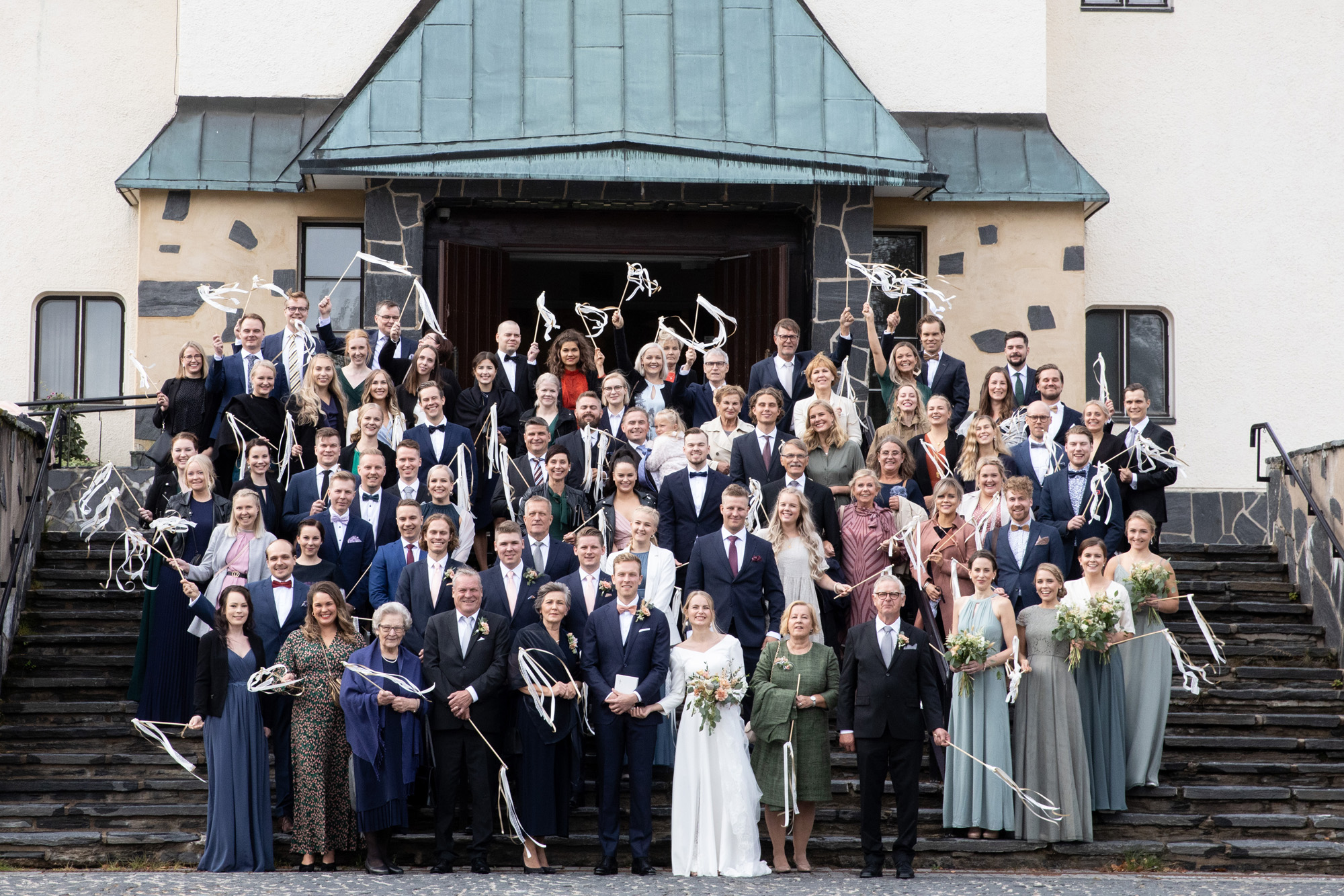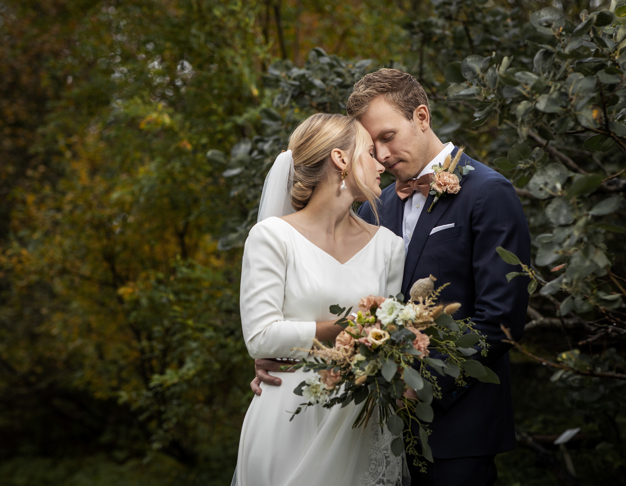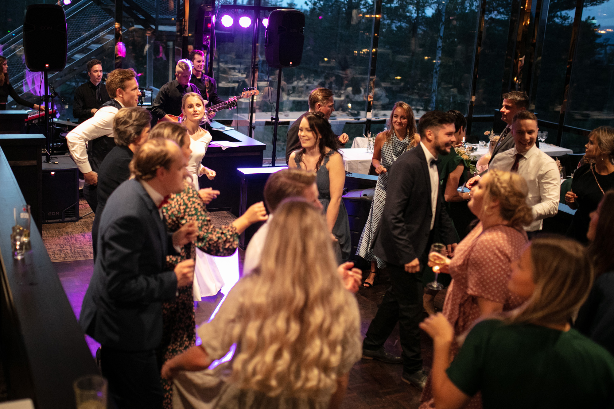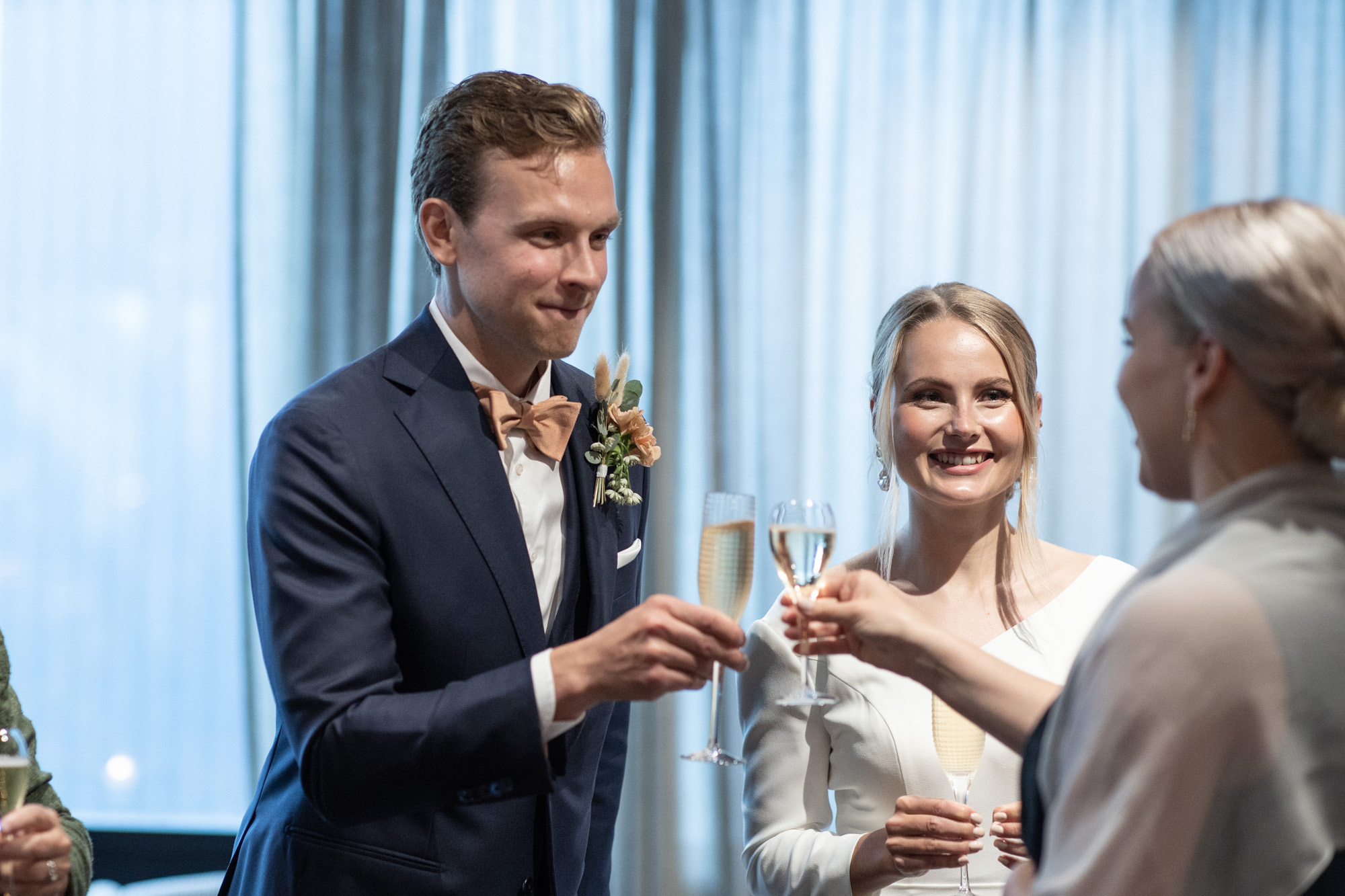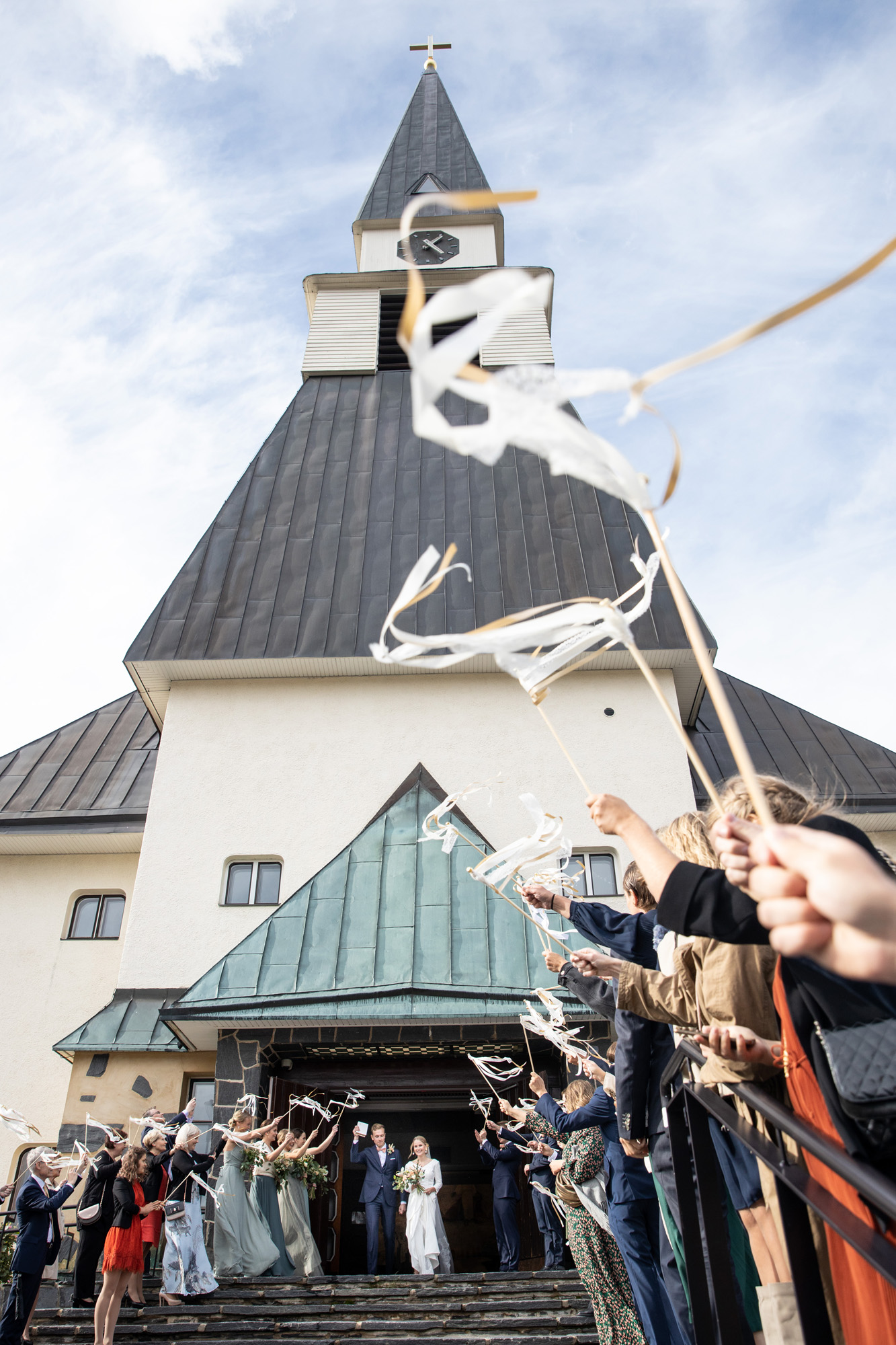 Karoliinan ja Raulin päivän aloitimme kuvaamalla valmistautumisen tunnelmia kaasojen kanssa Arctic Light hotellilla. Päivä oli sateinen joten kuvasimme potretteja ennen vihkimistä Arktikumin sisätiloissa, josta oli sateen tauottua hyvä pistäytyä myös puistoalueella. Illalla teimme myös pikaisen potrettikuvauksen Ounasvaaralla juhlapaikkana olleen Sky Hotellin läheisyydessä. Vaikka satenen sää voi tuottaa enemmän järjestelyä kuvauksen suhteen, niin se kyllä kannattaa. Nimittäin juuri se sateen jälkeinen valo ja ilman utuinen raikkaus on niin upeaa ja tuo aivan omanlaista herkkyyttä kuviin.