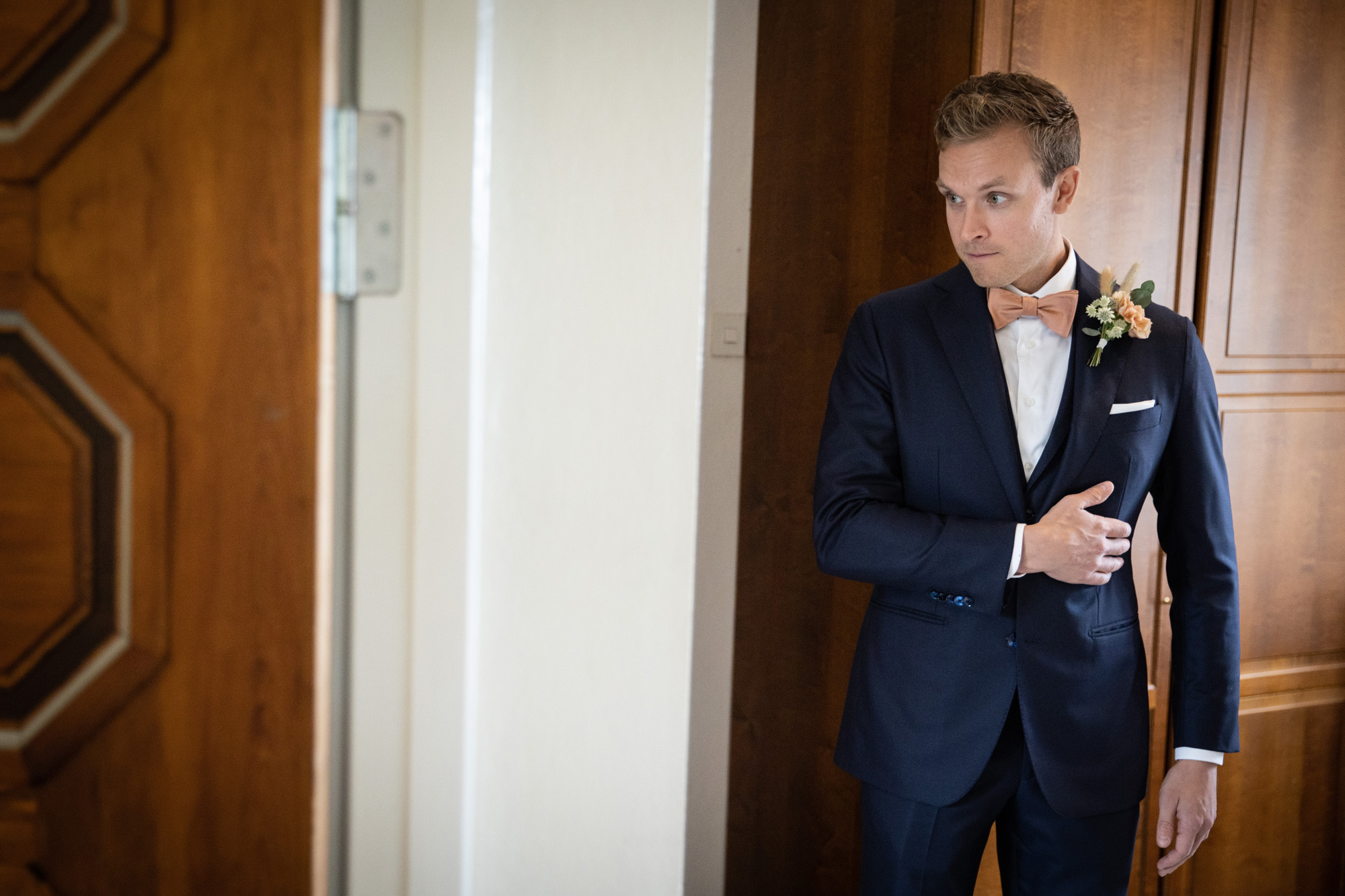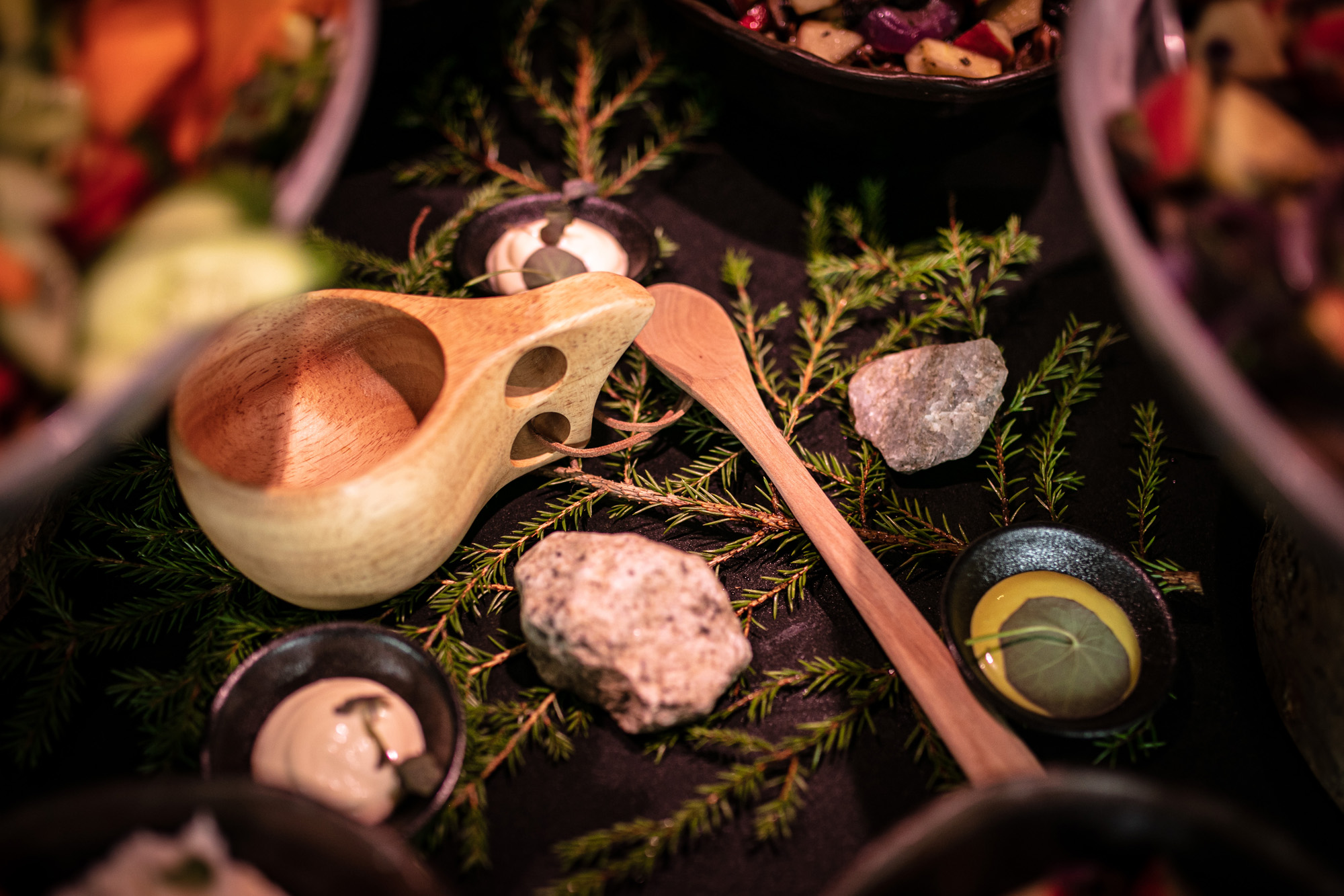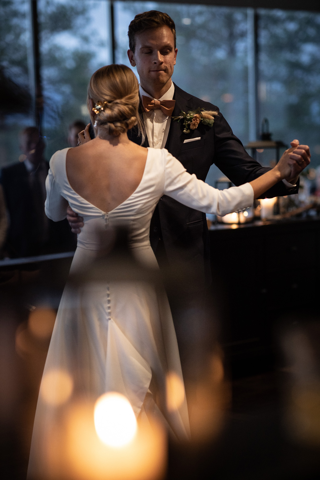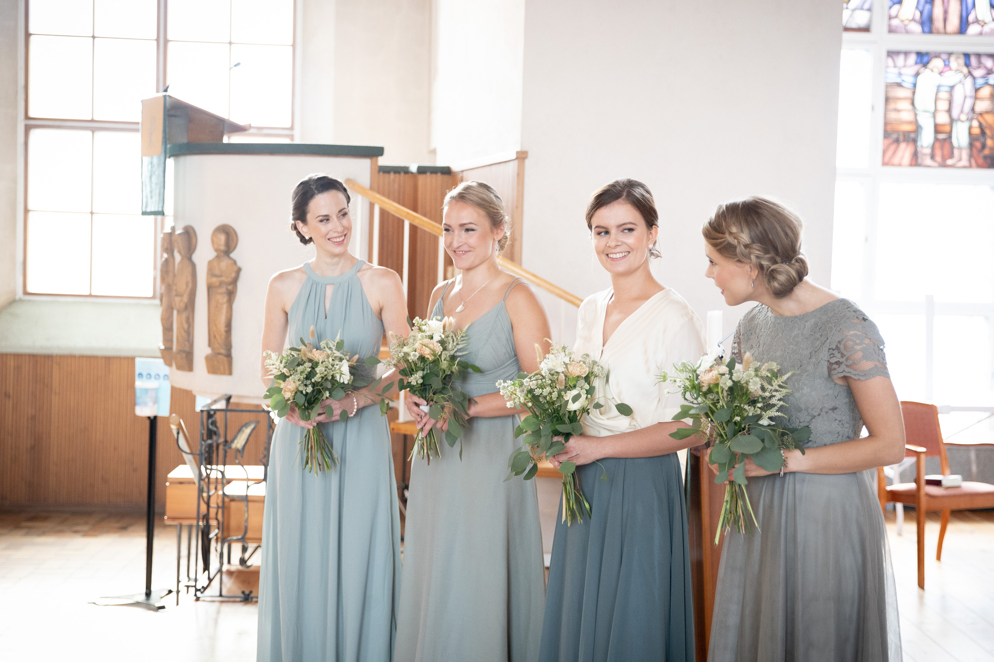 Karoliinan ja Raulin päivän aloitimme kuvaamalla valmistautumisen tunnelmia kaasojen kanssa Arctic Light hotellilla. Päivä oli sateinen joten kuvasimme potretteja ennen vihkimistä Arktikumin sisätiloissa, josta oli sateen tauottua hyvä pistäytyä myös puistoalueella. Illalla teimme myös pikaisen potrettikuvauksen Ounasvaaralla juhlapaikkana olleen Sky Hotellin läheisyydessä. Vaikka satenen sää voi tuottaa enemmän järjestelyä kuvauksen suhteen, niin se kyllä kannattaa. Nimittäin juuri se sateen jälkeinen valo ja ilman utuinen raikkaus on niin upeaa ja tuo aivan omanlaista herkkyyttä kuviin.