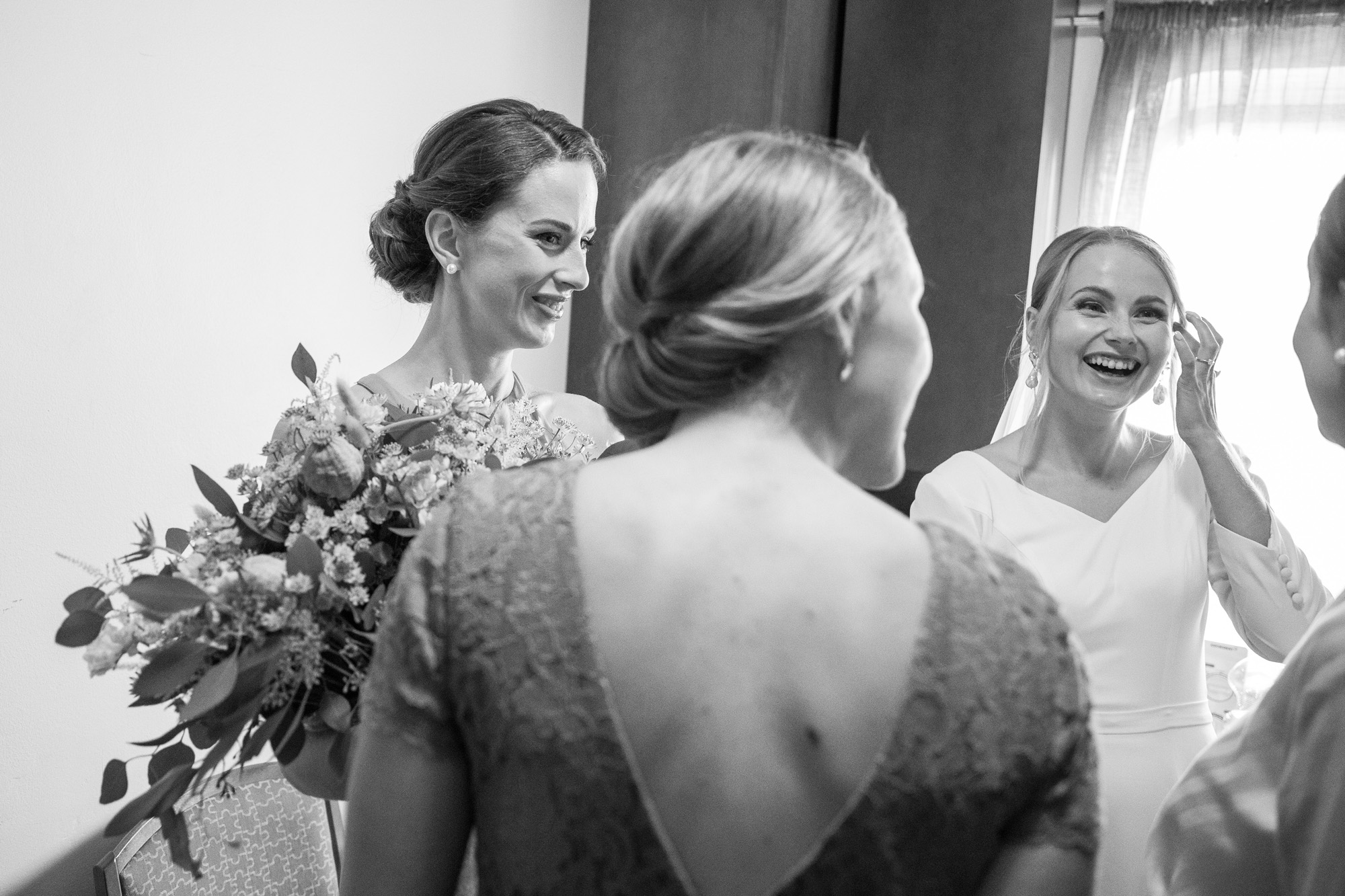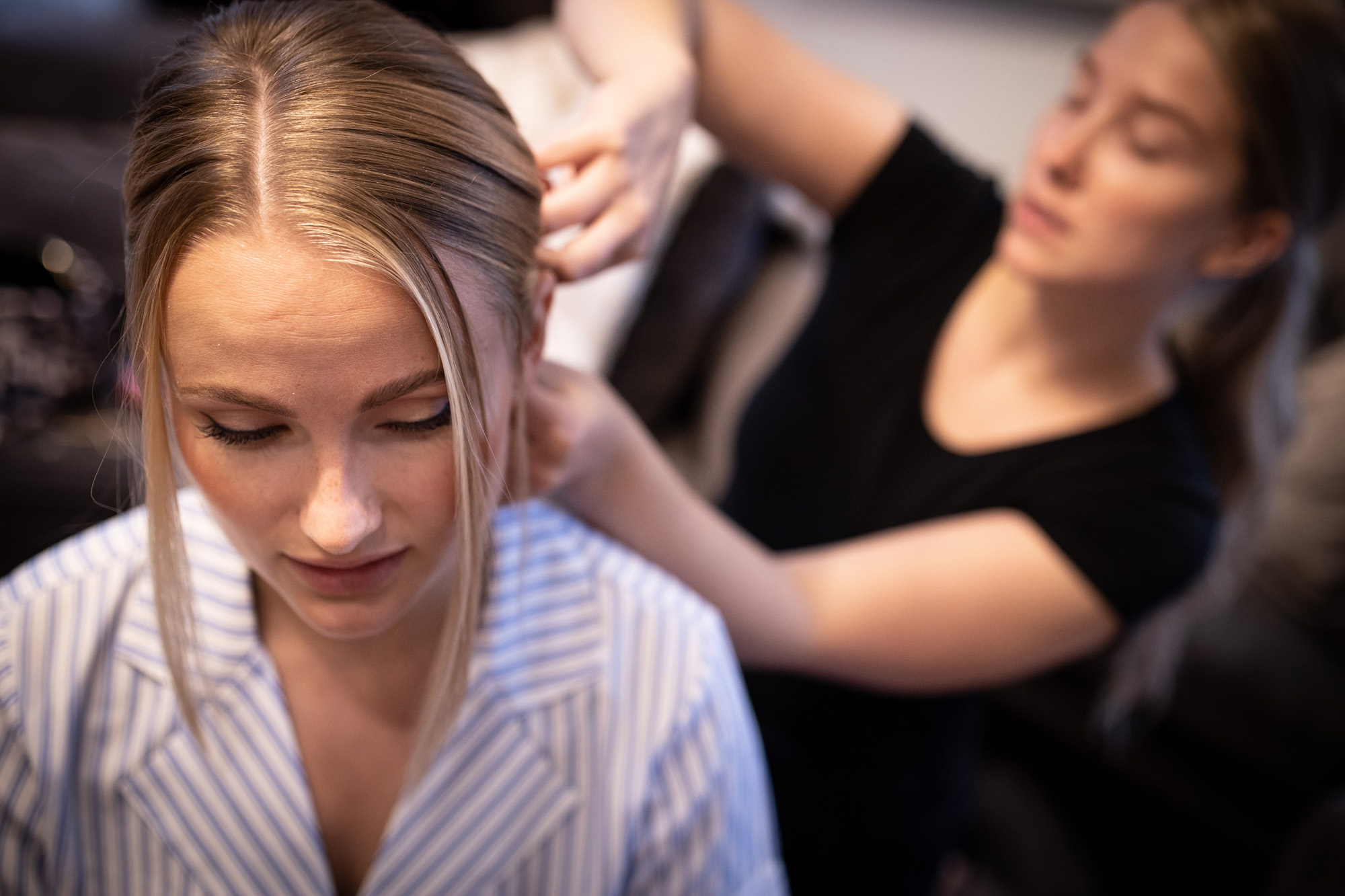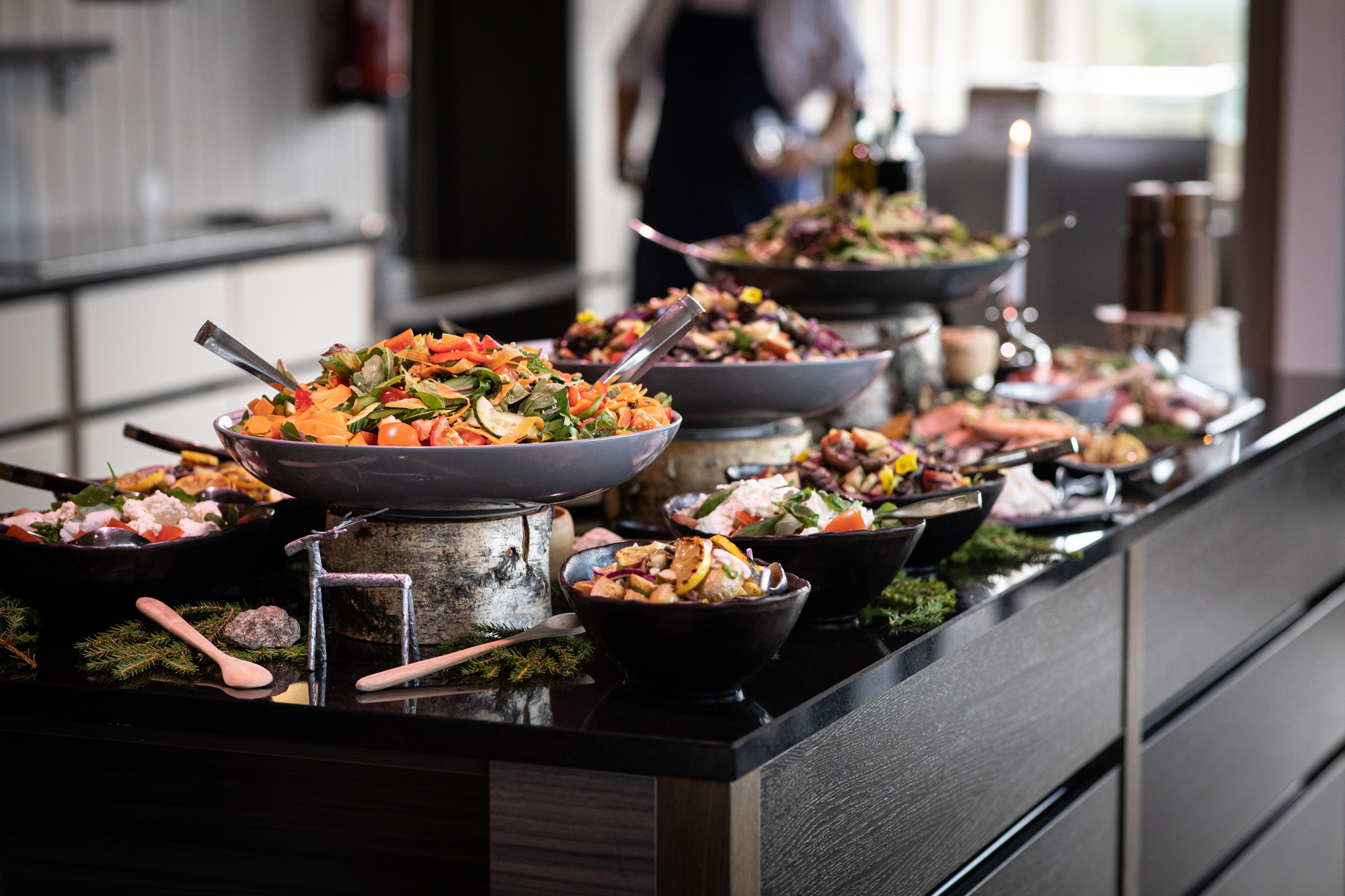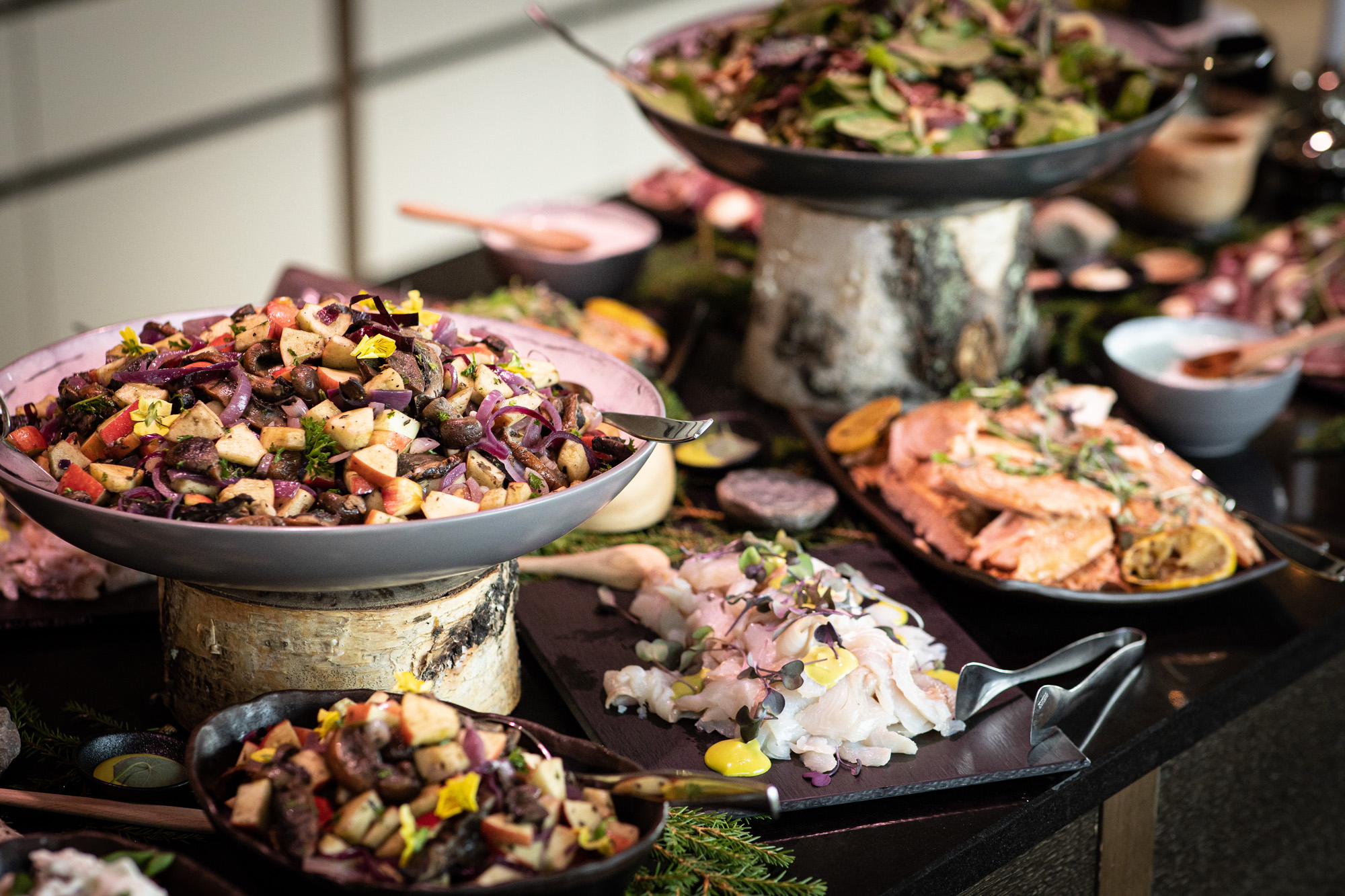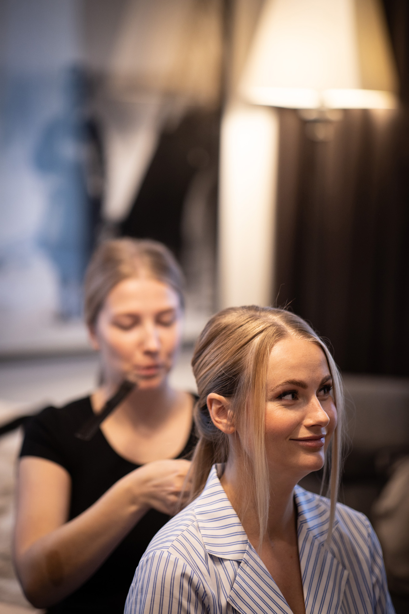Karoliinan ja Raulin päivän aloitimme kuvaamalla valmistautumisen tunnelmia kaasojen kanssa Arctic Light hotellilla. Päivä oli sateinen joten kuvasimme potretteja ennen vihkimistä Arktikumin sisätiloissa, josta oli sateen tauottua hyvä pistäytyä myös puistoalueella. Illalla teimme myös pikaisen potrettikuvauksen Ounasvaaralla juhlapaikkana olleen Sky Hotellin läheisyydessä. Vaikka satenen sää voi tuottaa enemmän järjestelyä kuvauksen suhteen, niin se kyllä kannattaa. Nimittäin juuri se sateen jälkeinen valo ja ilman utuinen raikkaus on niin upeaa ja tuo aivan omanlaista herkkyyttä kuviin.