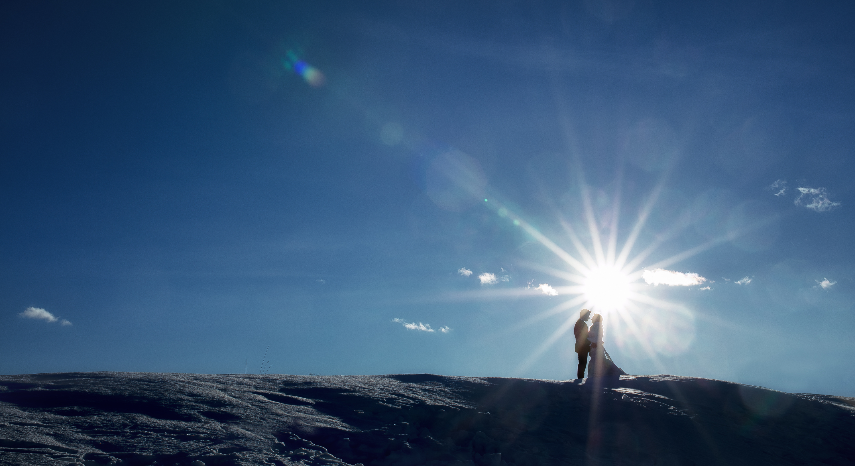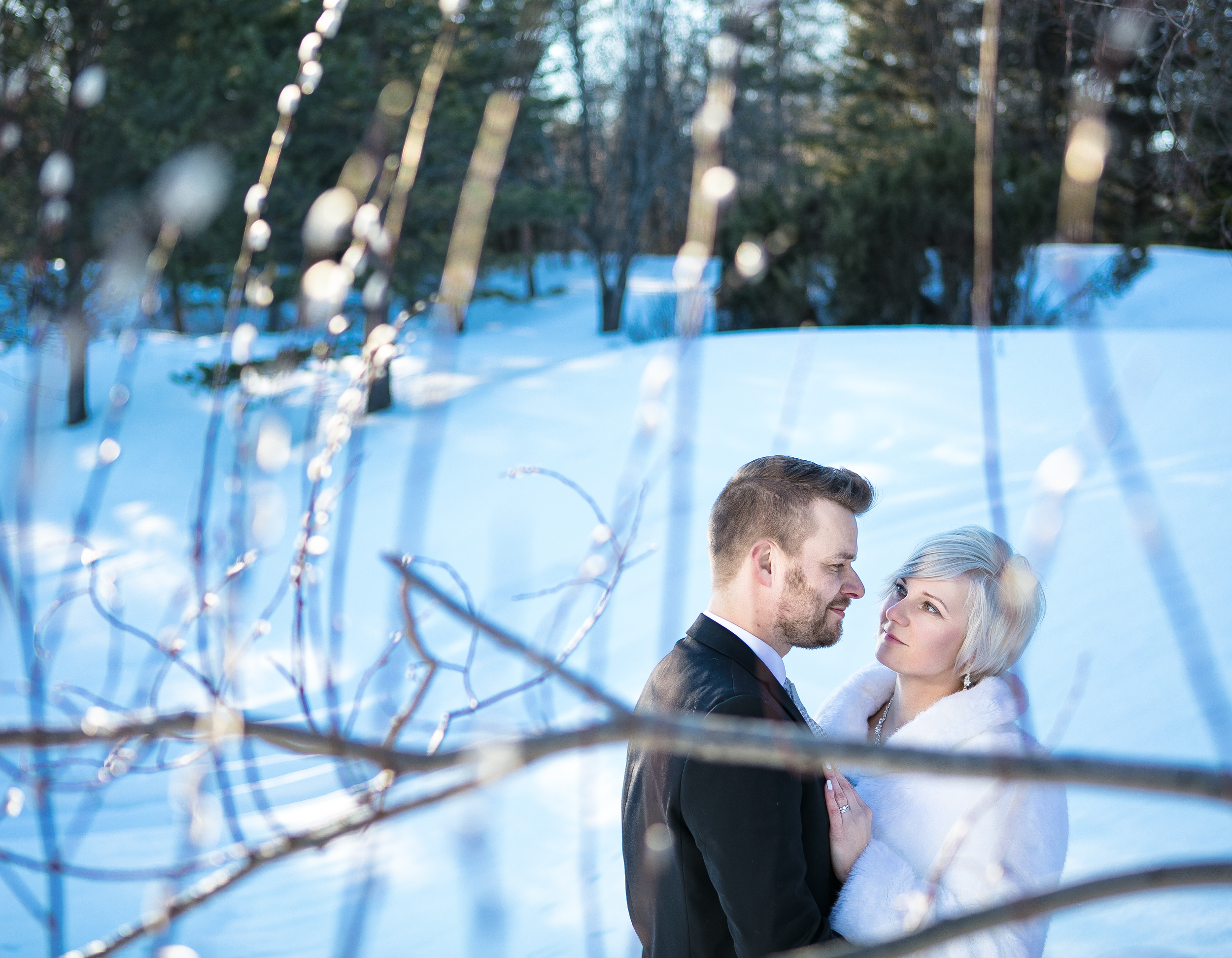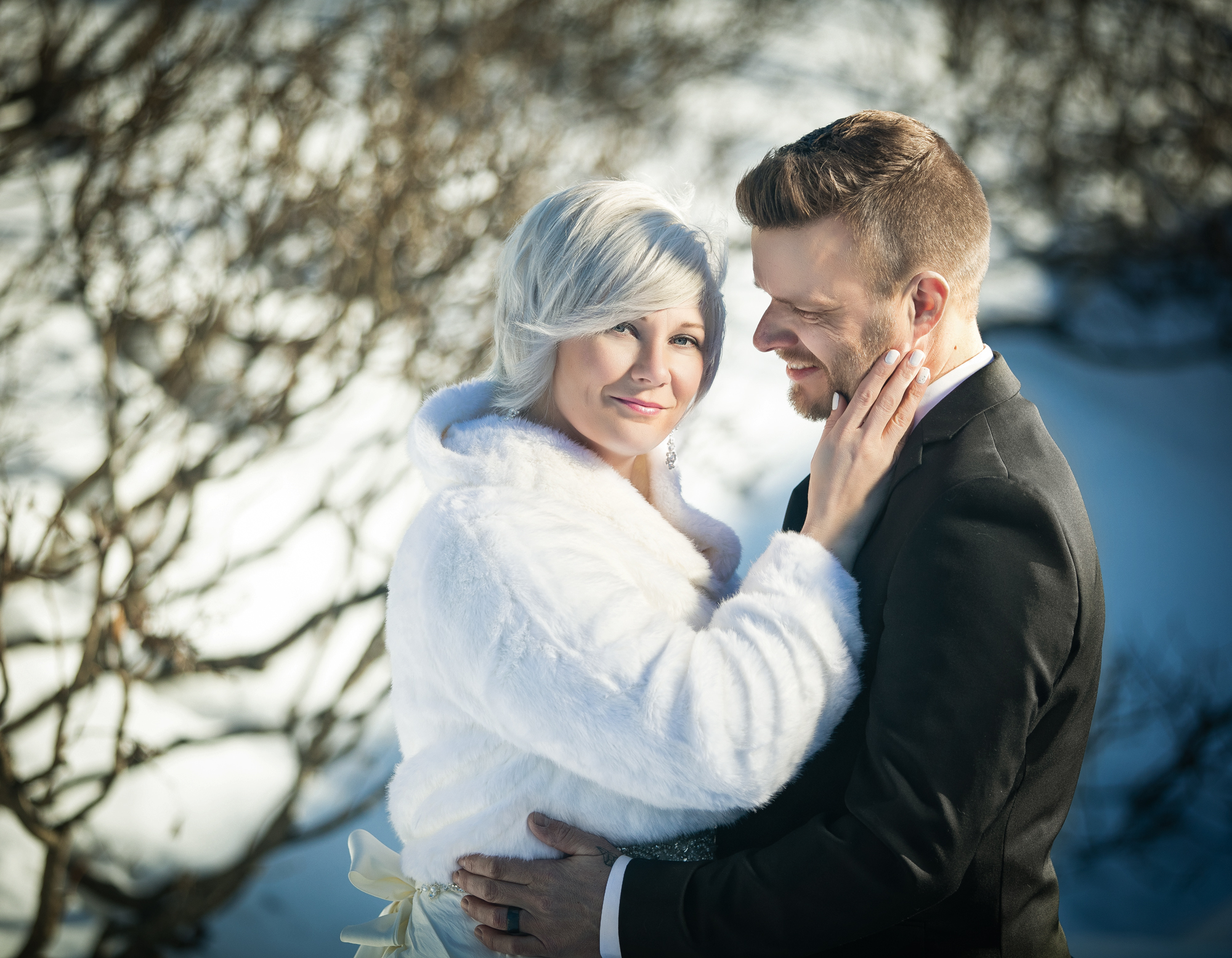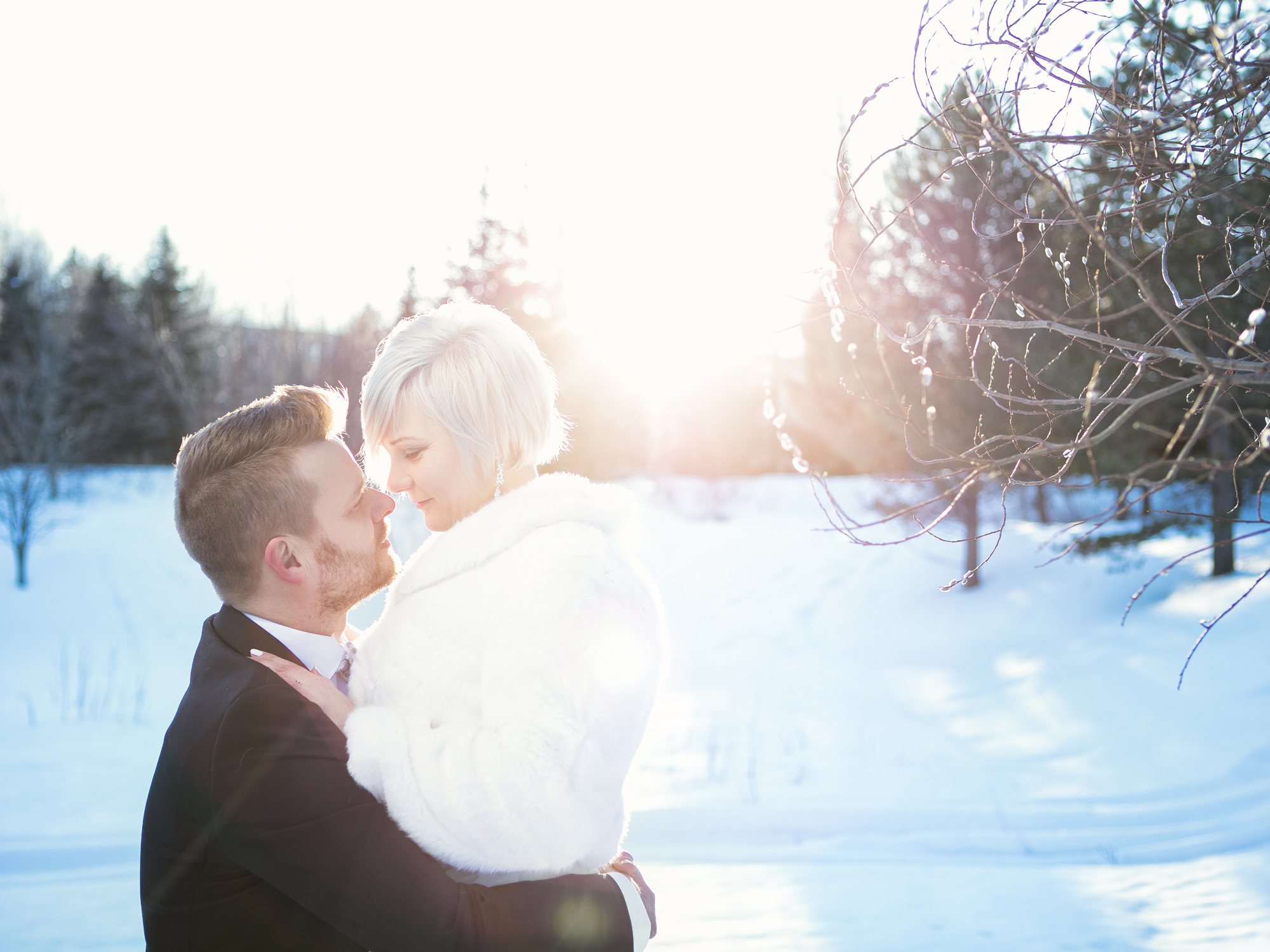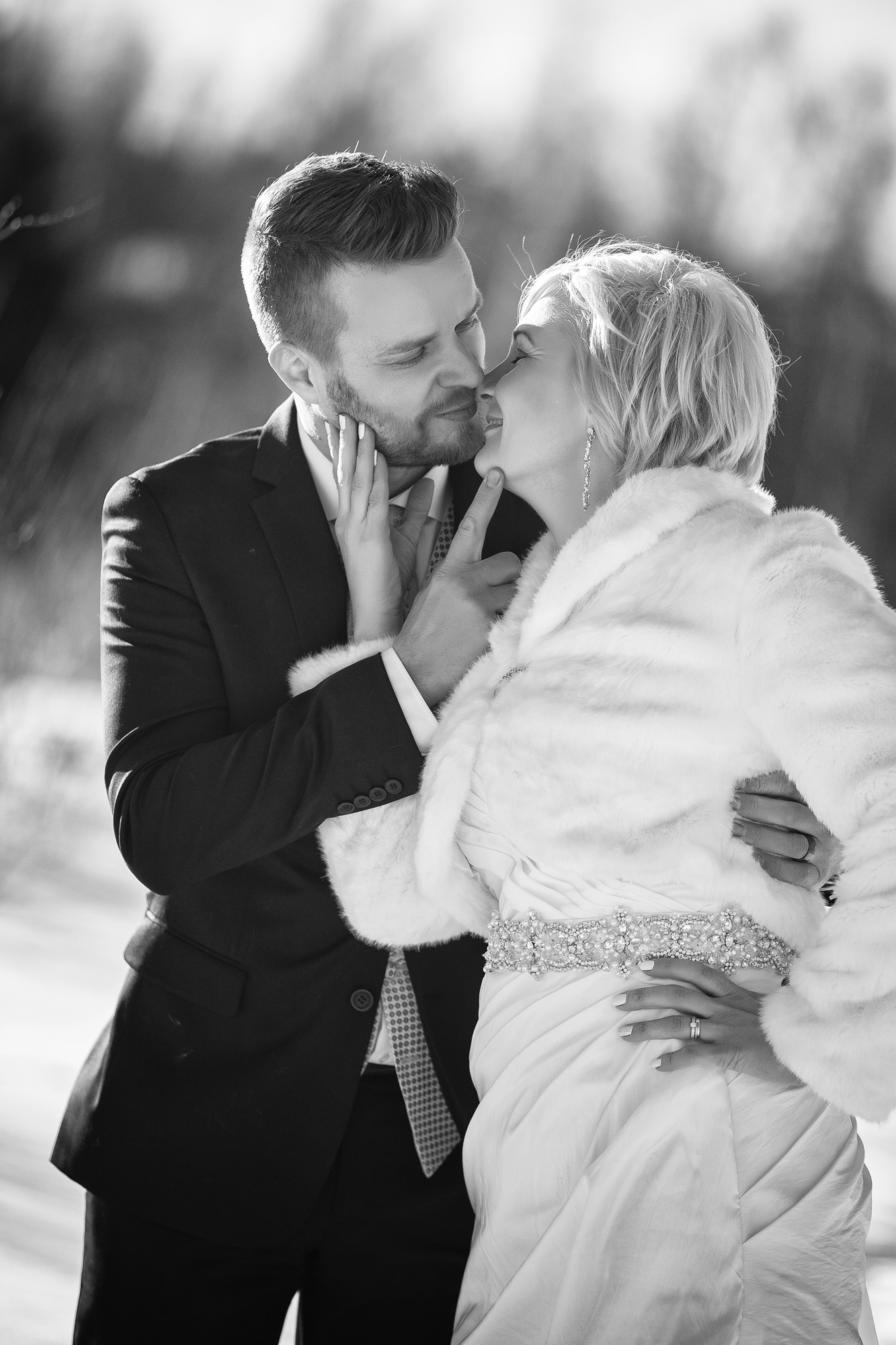 Hääpari pistäytyi potrettikuvauksessa pohjoisella häämatkallaan. Ihana kohtaaminen upean parin kanssa talvisessa Arktikumin puistossa Rovaniemellä.