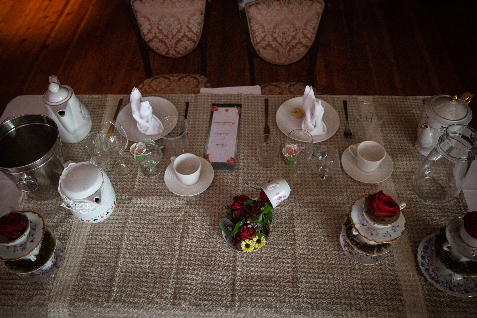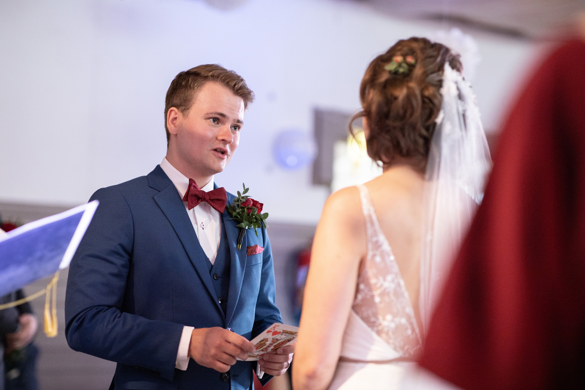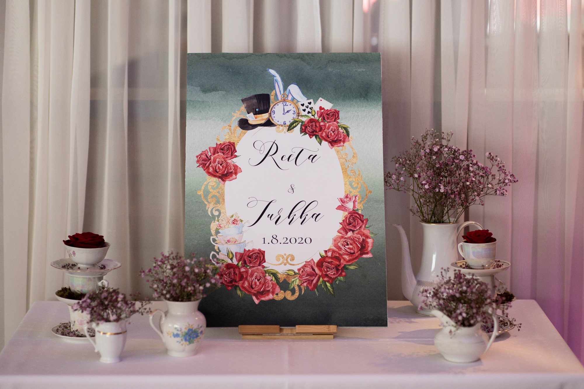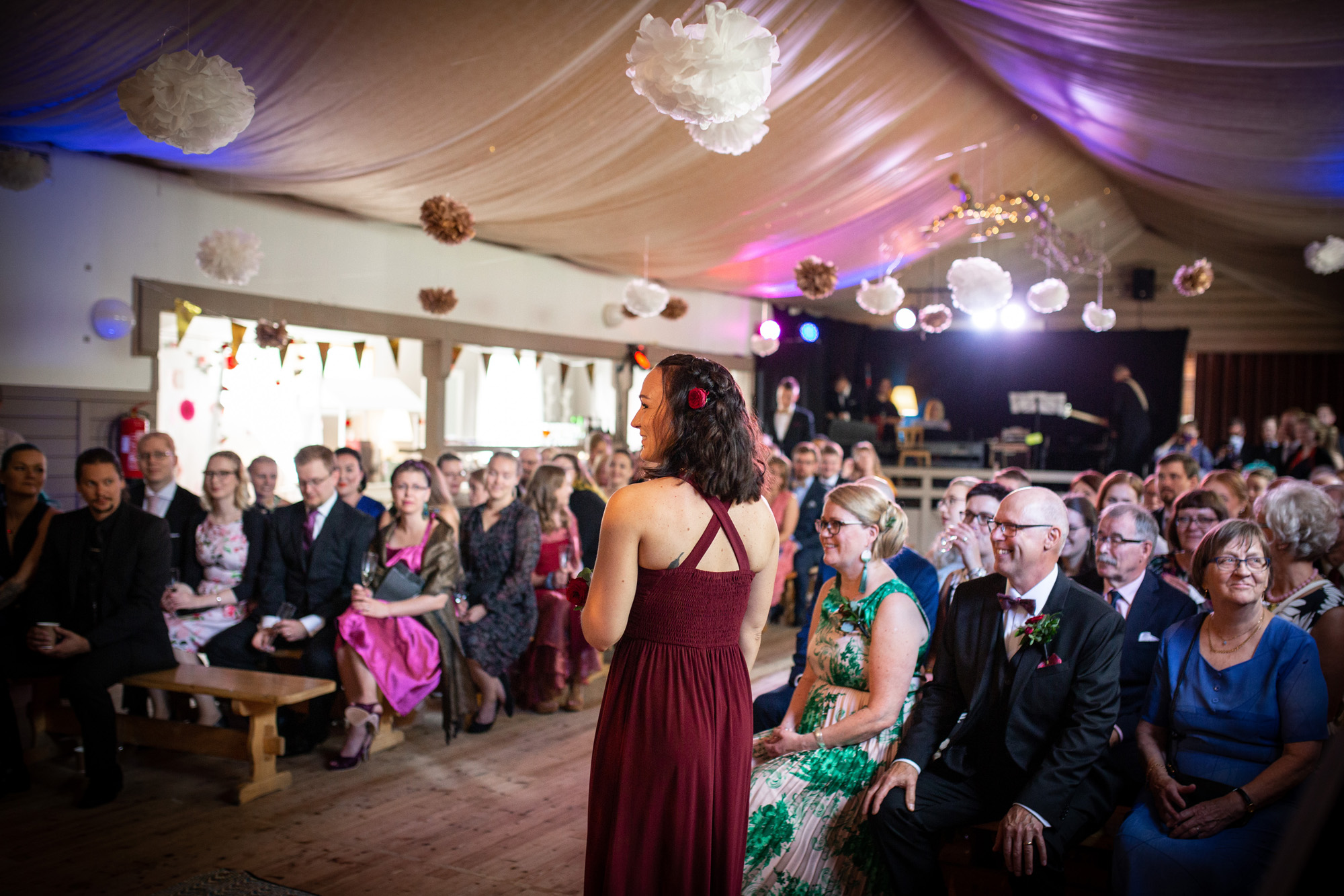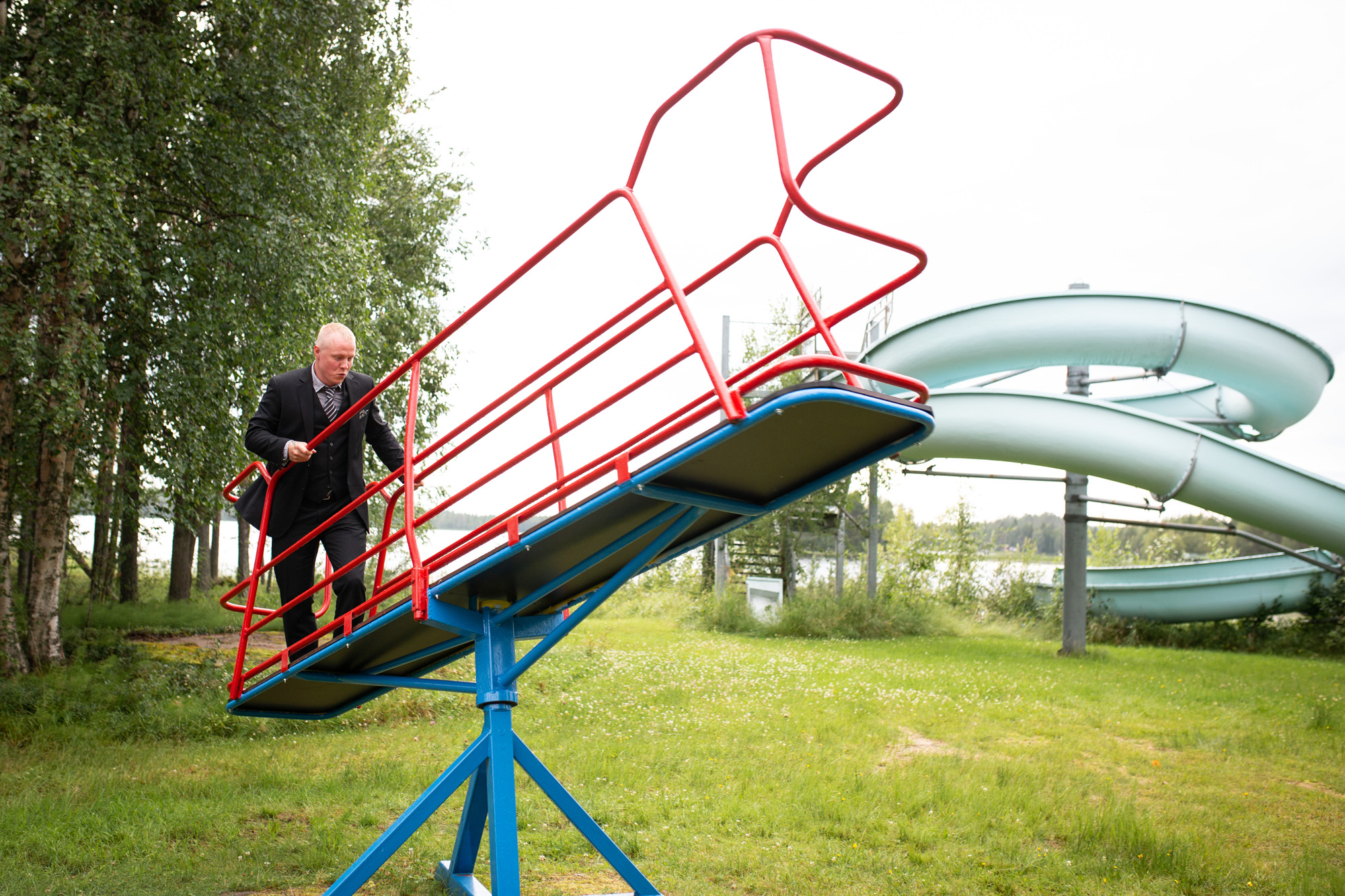 Reetan ja Turkan kuvauksen aloitimme firstlookilla potrettikuvauspaikaksemme valikoituneella Ounasvaaralla. Tykkään kuvata potretit rauhassa ennen vihkimistä, jolloin vihkimisen jälkeen pari voi keskityä juhlimiseen. Firstlookin kuvaamisella ennen potrettikuvausta saa ihanasti taltoitua ne tunteet ja pienetkin eleet, kun pari näkee toisensa ensimmäisen kerran hääpäivänä. Toki pieniä kuvaussessioita voidaan järjestää myös kesken hääjuhlan, mutta suurin osa potreteista on mukava kuvata ilman kiirettä kun paikalla on vain hääpari ja mahdolliset assarit. Metsäinen maisema oli Reetalle ja Turkalle mieleinen ja lisäksi he toivoivat potretteja kuvattavan myös dronella. Tähän tarkoitukseen sopi mainiosti Ounasvaaran kalliot, jotka tarjoavat maanläheisen, rosoisen taustan nostaen parin upeasti esiin. Jonkin aikaa odotimme juuri sopivaa valoa, jotta aurinko kurkisti hieman pilvenreunan takaa. Lopputulos on nähtävillä gallerian viimeisenä ruutuna. Kuvasimme myös muita versioita, mutta tässä drammaattisen romanttisessa kuvassa kallioilla oli mielestämme sitä jotakin. Vihkiminen ja hääjuhla järjestettiin Palojärven lomakeskuksella, jossa kuvasin juhlan tunnelmia iltaan saakka.