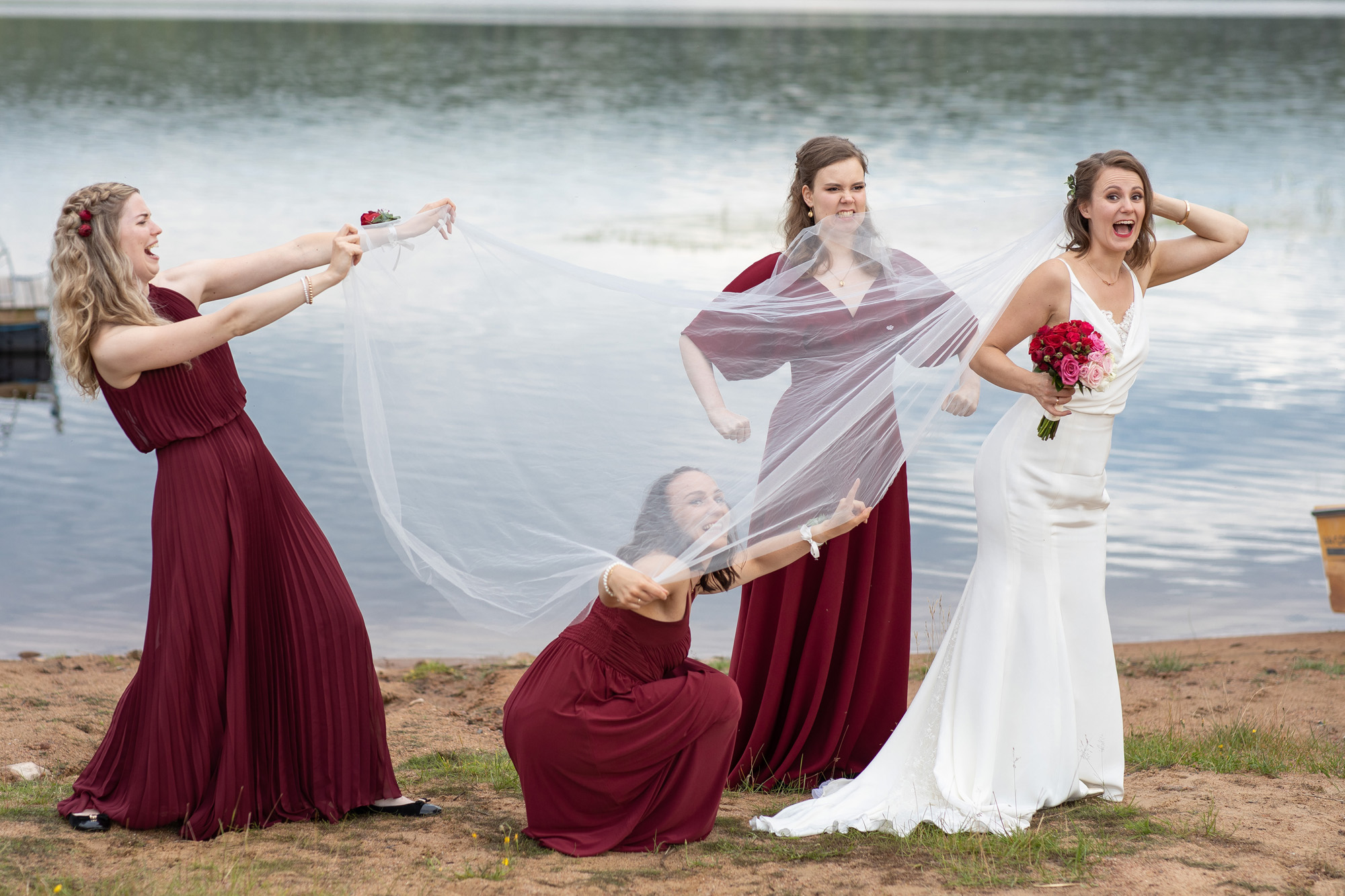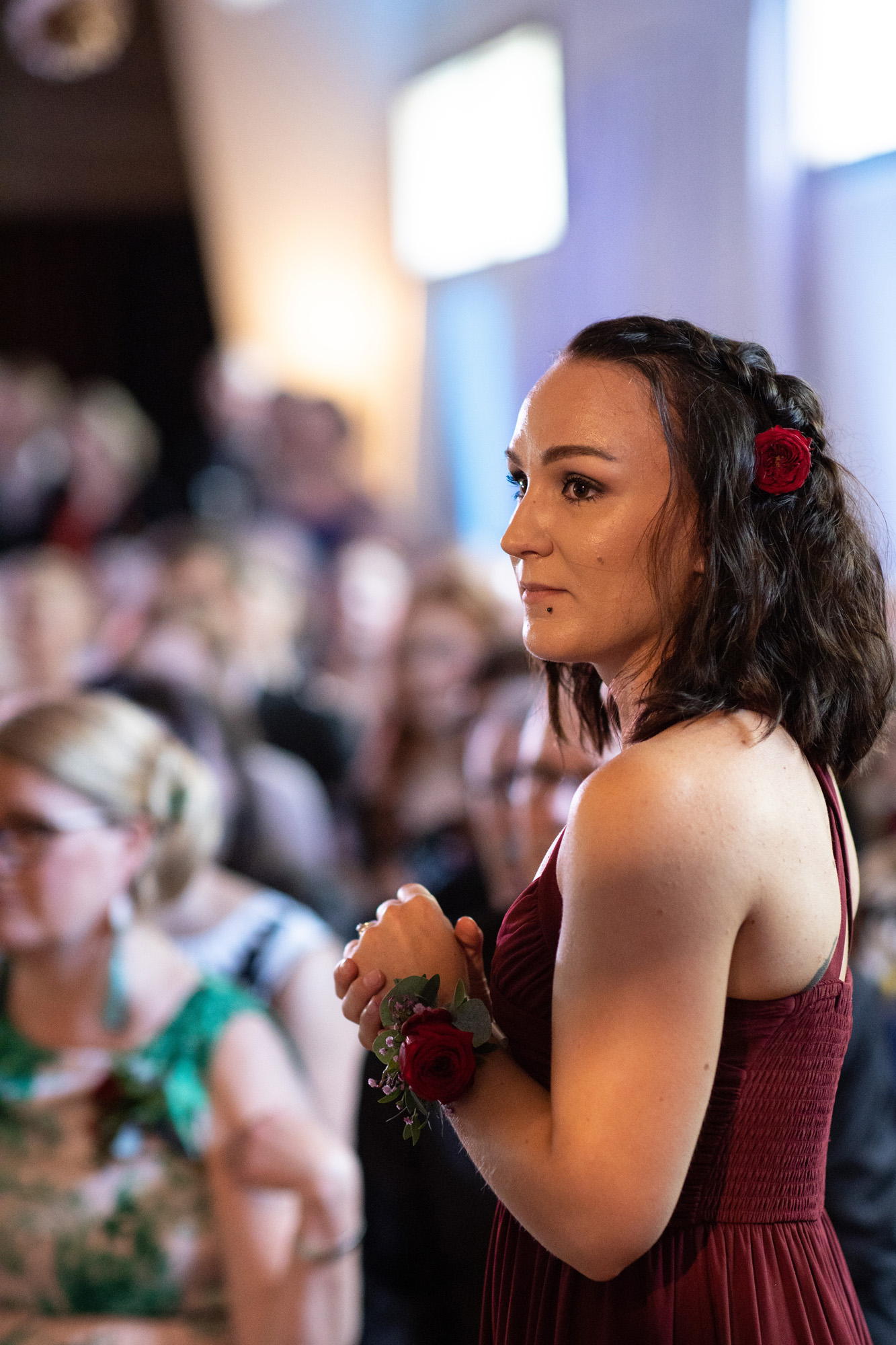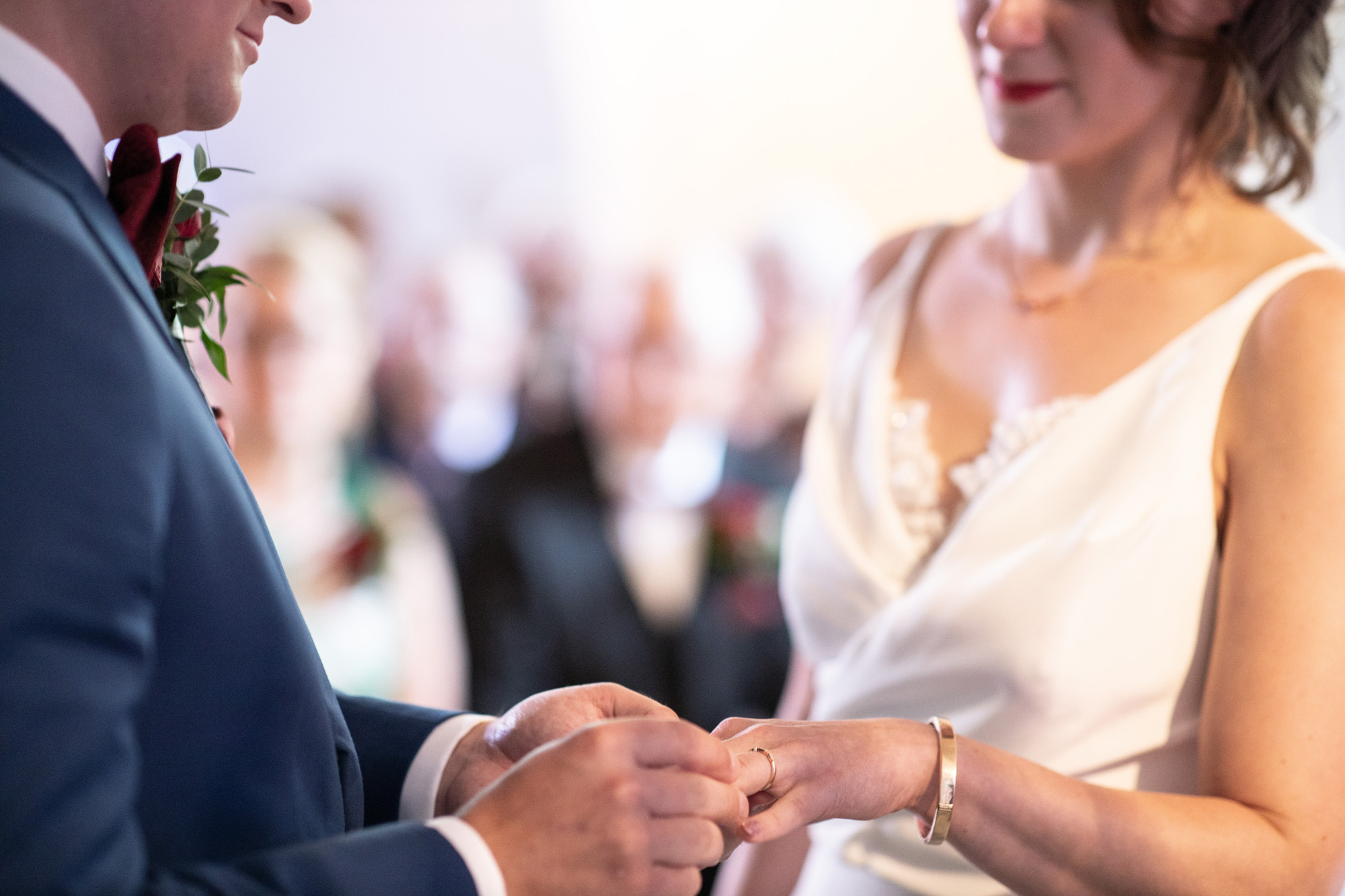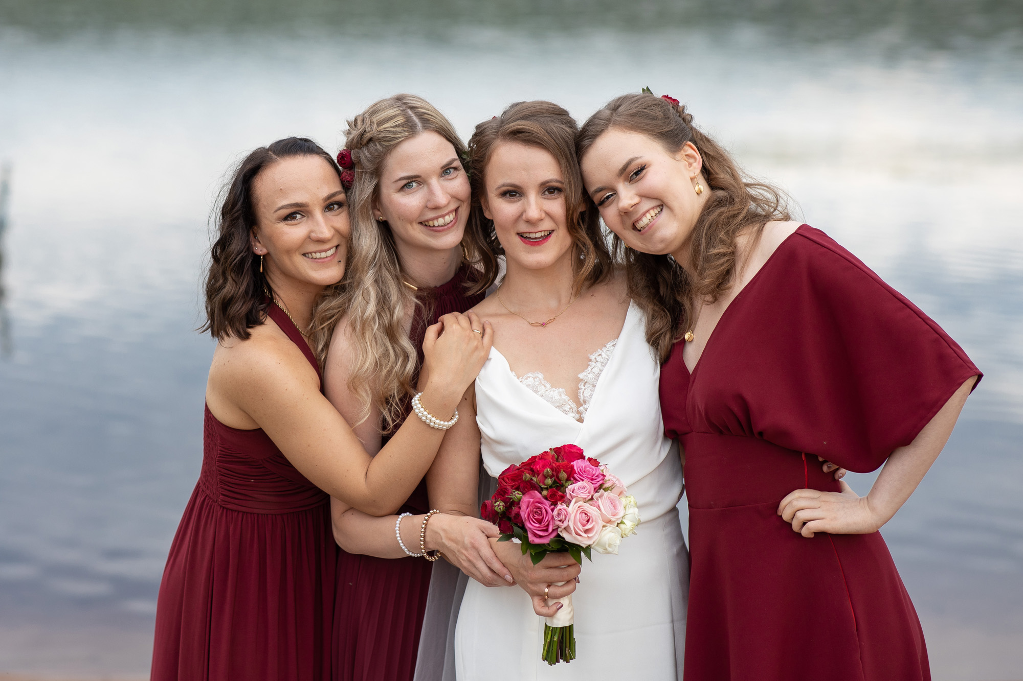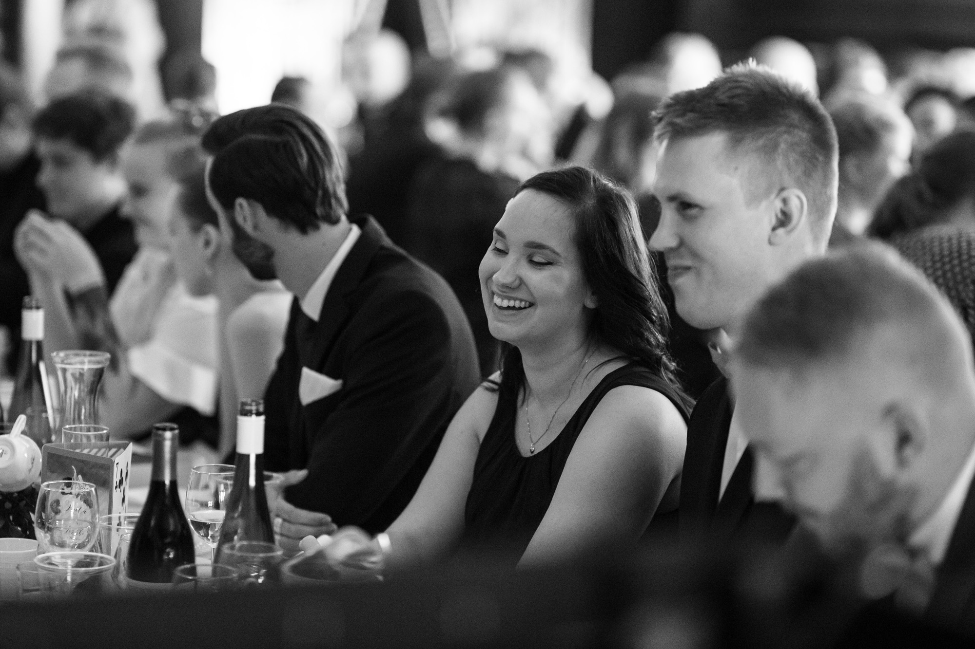 Reetan ja Turkan kuvauksen aloitimme firstlookilla potrettikuvauspaikaksemme valikoituneella Ounasvaaralla. Tykkään kuvata potretit rauhassa ennen vihkimistä, jolloin vihkimisen jälkeen pari voi keskityä juhlimiseen. Firstlookin kuvaamisella ennen potrettikuvausta saa ihanasti taltoitua ne tunteet ja pienetkin eleet, kun pari näkee toisensa ensimmäisen kerran hääpäivänä. Toki pieniä kuvaussessioita voidaan järjestää myös kesken hääjuhlan, mutta suurin osa potreteista on mukava kuvata ilman kiirettä kun paikalla on vain hääpari ja mahdolliset assarit. Metsäinen maisema oli Reetalle ja Turkalle mieleinen ja lisäksi he toivoivat potretteja kuvattavan myös dronella. Tähän tarkoitukseen sopi mainiosti Ounasvaaran kalliot, jotka tarjoavat maanläheisen, rosoisen taustan nostaen parin upeasti esiin. Jonkin aikaa odotimme juuri sopivaa valoa, jotta aurinko kurkisti hieman pilvenreunan takaa. Lopputulos on nähtävillä gallerian viimeisenä ruutuna. Kuvasimme myös muita versioita, mutta tässä drammaattisen romanttisessa kuvassa kallioilla oli mielestämme sitä jotakin. Vihkiminen ja hääjuhla järjestettiin Palojärven lomakeskuksella, jossa kuvasin juhlan tunnelmia iltaan saakka.