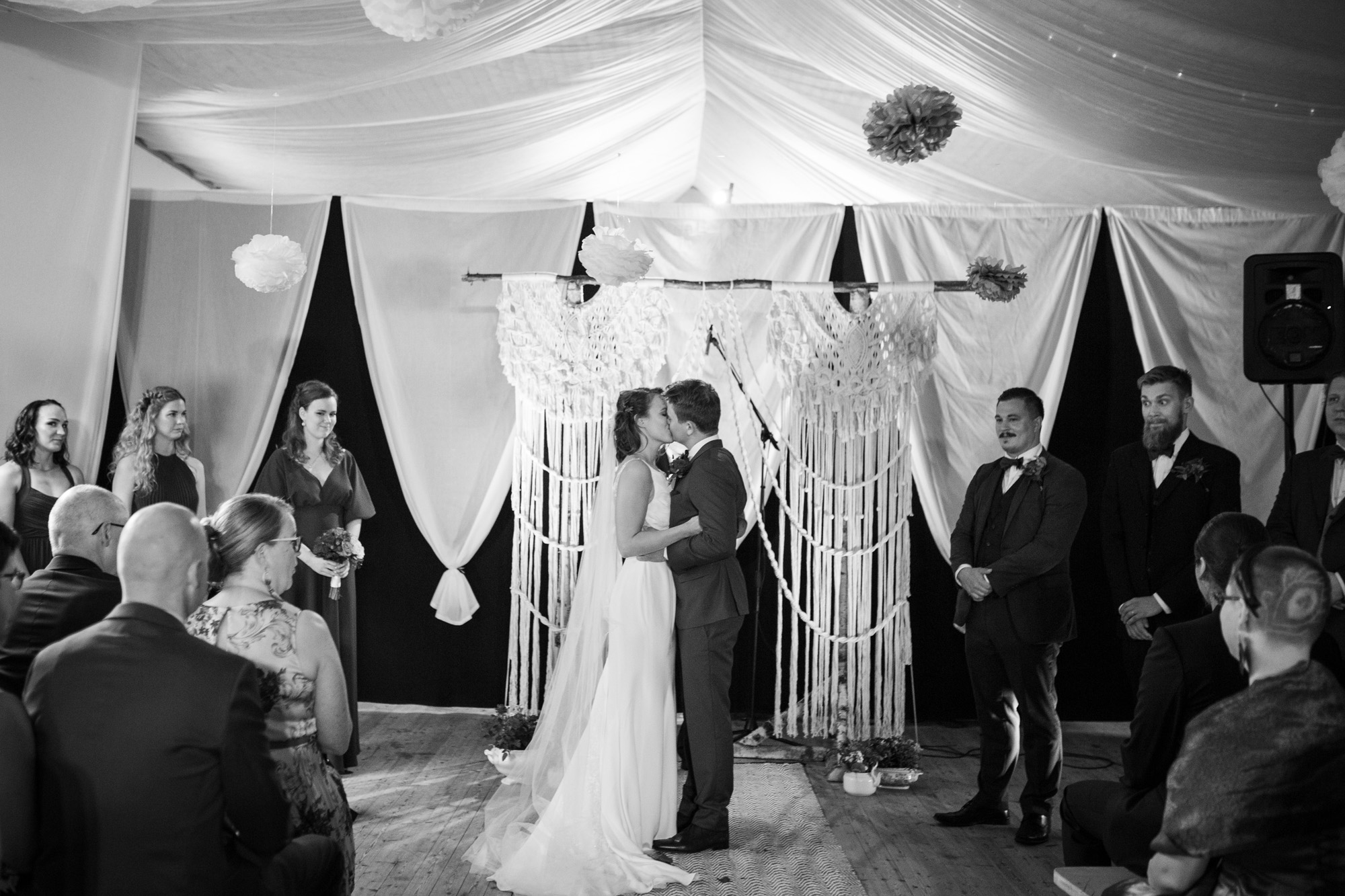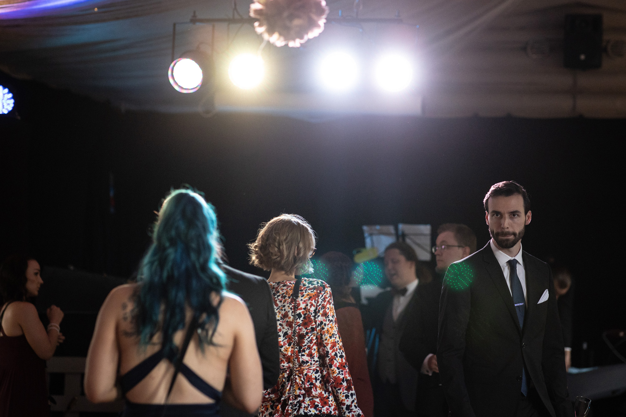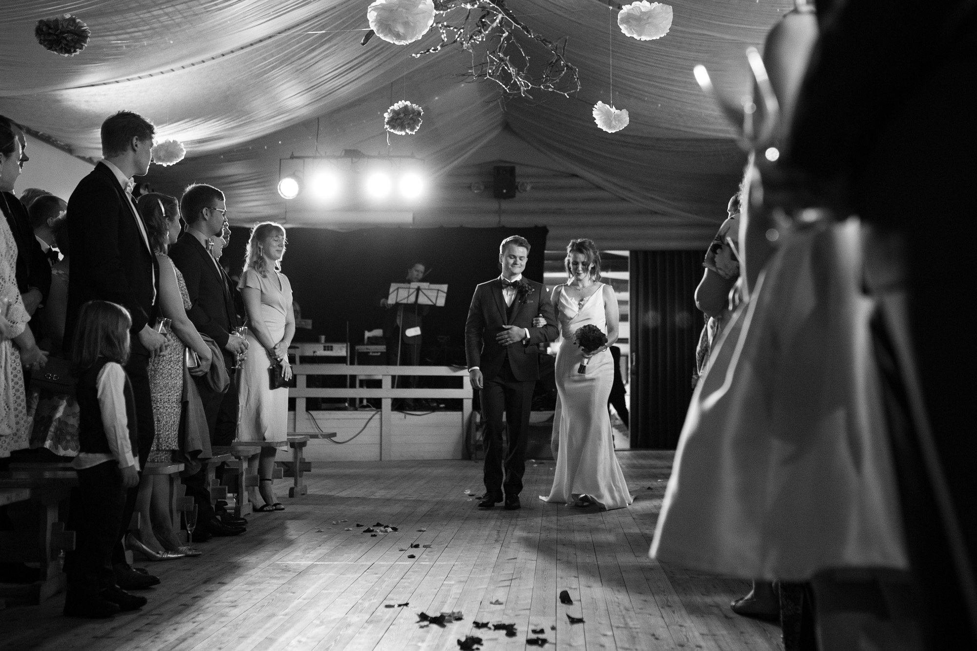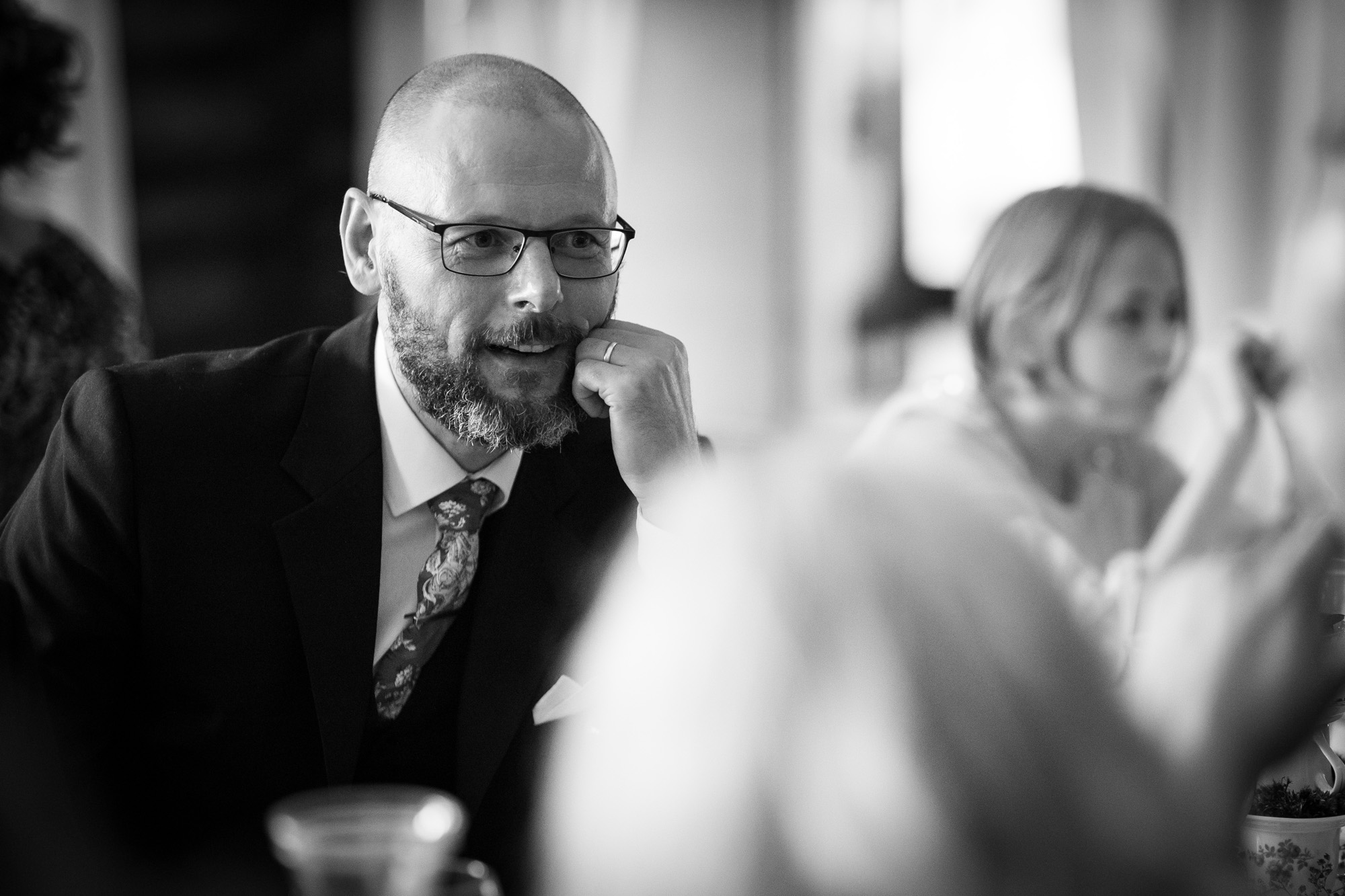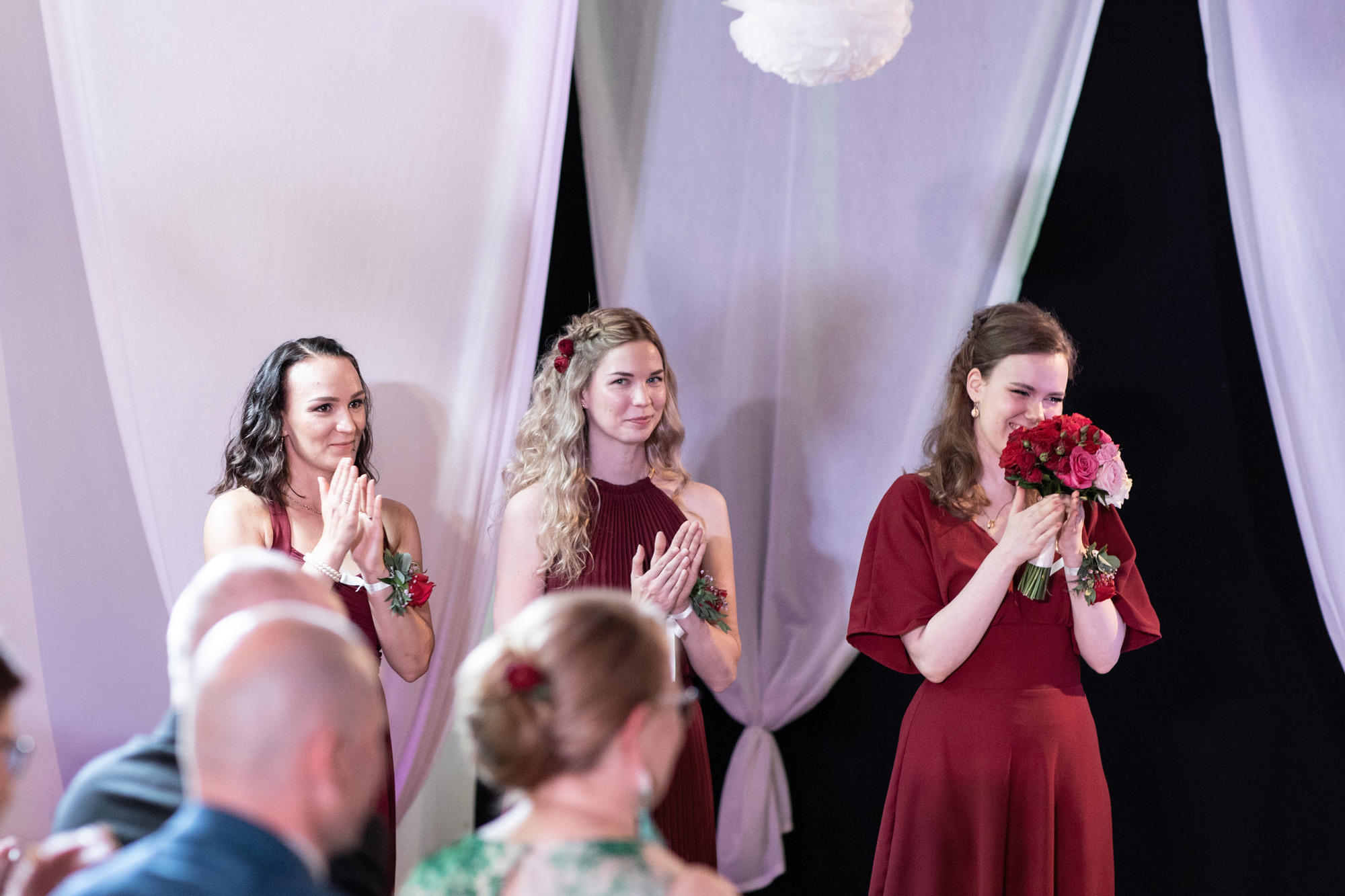 Reetan ja Turkan kuvauksen aloitimme firstlookilla potrettikuvauspaikaksemme valikoituneella Ounasvaaralla. Tykkään kuvata potretit rauhassa ennen vihkimistä, jolloin vihkimisen jälkeen pari voi keskityä juhlimiseen. Firstlookin kuvaamisella ennen potrettikuvausta saa ihanasti taltoitua ne tunteet ja pienetkin eleet, kun pari näkee toisensa ensimmäisen kerran hääpäivänä. Toki pieniä kuvaussessioita voidaan järjestää myös kesken hääjuhlan, mutta suurin osa potreteista on mukava kuvata ilman kiirettä kun paikalla on vain hääpari ja mahdolliset assarit. Metsäinen maisema oli Reetalle ja Turkalle mieleinen ja lisäksi he toivoivat potretteja kuvattavan myös dronella. Tähän tarkoitukseen sopi mainiosti Ounasvaaran kalliot, jotka tarjoavat maanläheisen, rosoisen taustan nostaen parin upeasti esiin. Jonkin aikaa odotimme juuri sopivaa valoa, jotta aurinko kurkisti hieman pilvenreunan takaa. Lopputulos on nähtävillä gallerian viimeisenä ruutuna. Kuvasimme myös muita versioita, mutta tässä drammaattisen romanttisessa kuvassa kallioilla oli mielestämme sitä jotakin. Vihkiminen ja hääjuhla järjestettiin Palojärven lomakeskuksella, jossa kuvasin juhlan tunnelmia iltaan saakka.