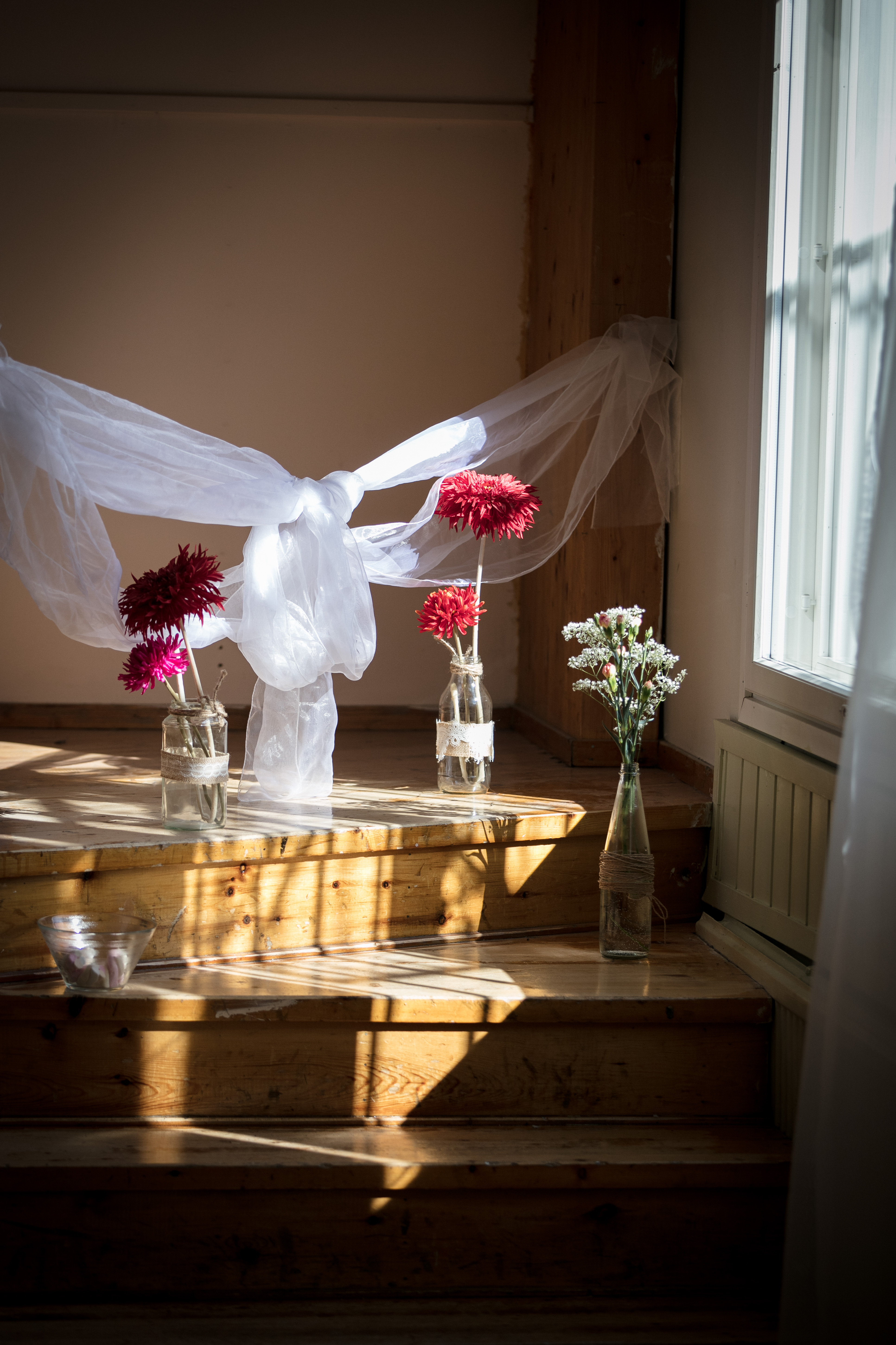 Häitä juhlittiin elokuun helteessä. Potretit kuvattiin pääosin vihkimisen jälkeen Arktikumin puistossa. Tämän jälkeen häitä juhlittiin ja kuvattiin iltaan saakka.