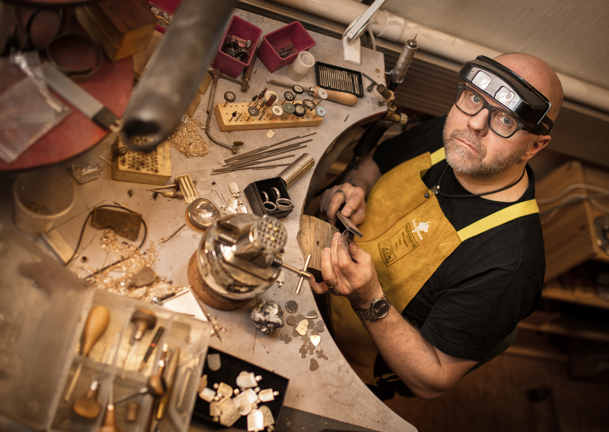 Käsityönä koruja valmistava Mauri Härkönen työskentelee Rovaniemellä. Dokumentoimme hänen työskentelyään ja otimme myös henkilökuvia markkinointia varten. Tunnelmallisia kuvia kauniissa valossa, koruntekijän omassa ateljeessa.