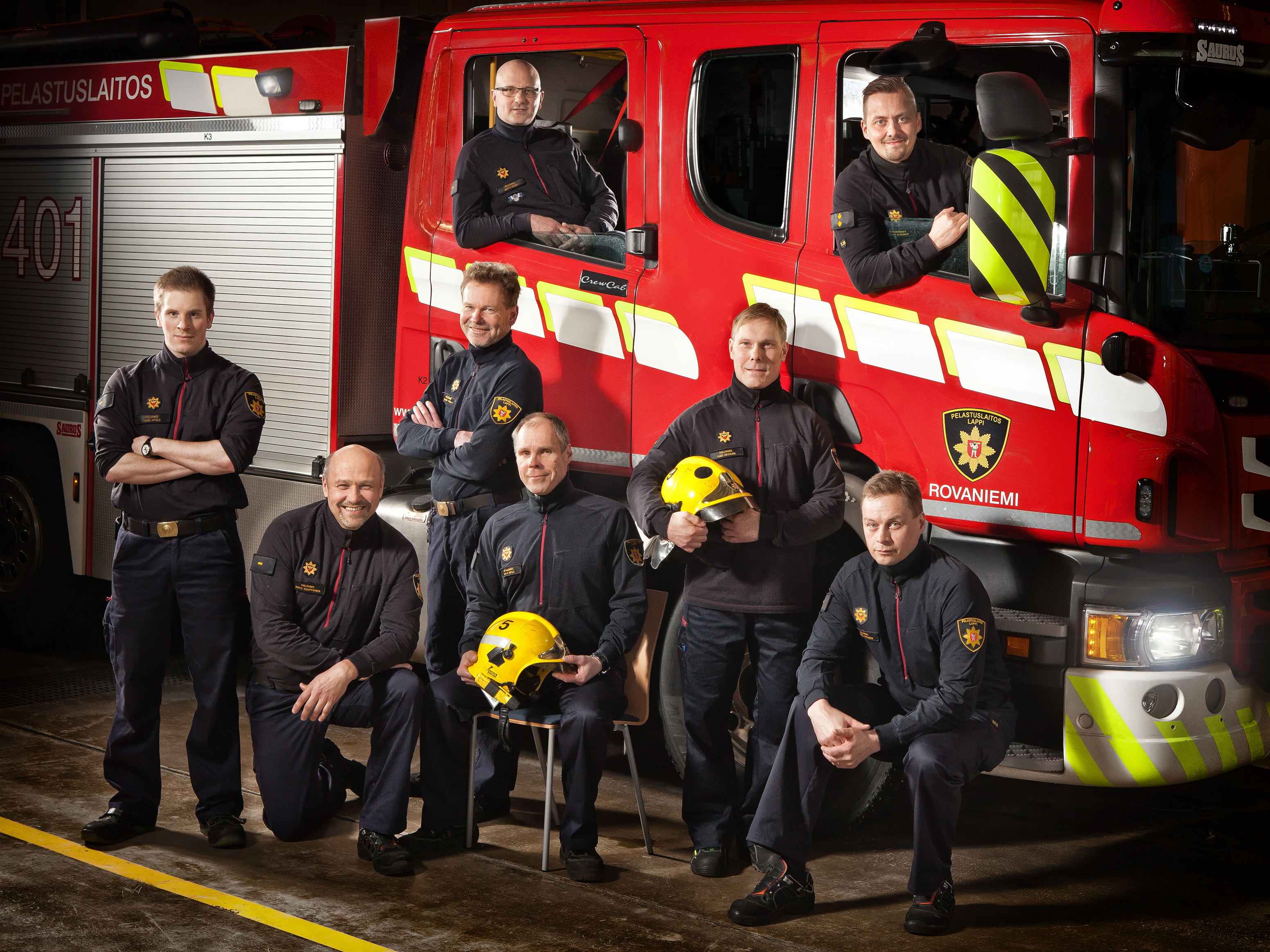 Lapin pelastulaitos toivoi henkilöstökuvien päivittämistä. Tavanomaisten henkilöstökuvien sijasta ehdotimme asiakkaalle pelastustoiminnan luonteeseen sopivia muotokuvamaisia ja näyttäviä henkilöstökuvia. Kehystetyt henkilökuvat ovat esillä pelastuslaitoksen aulassa.