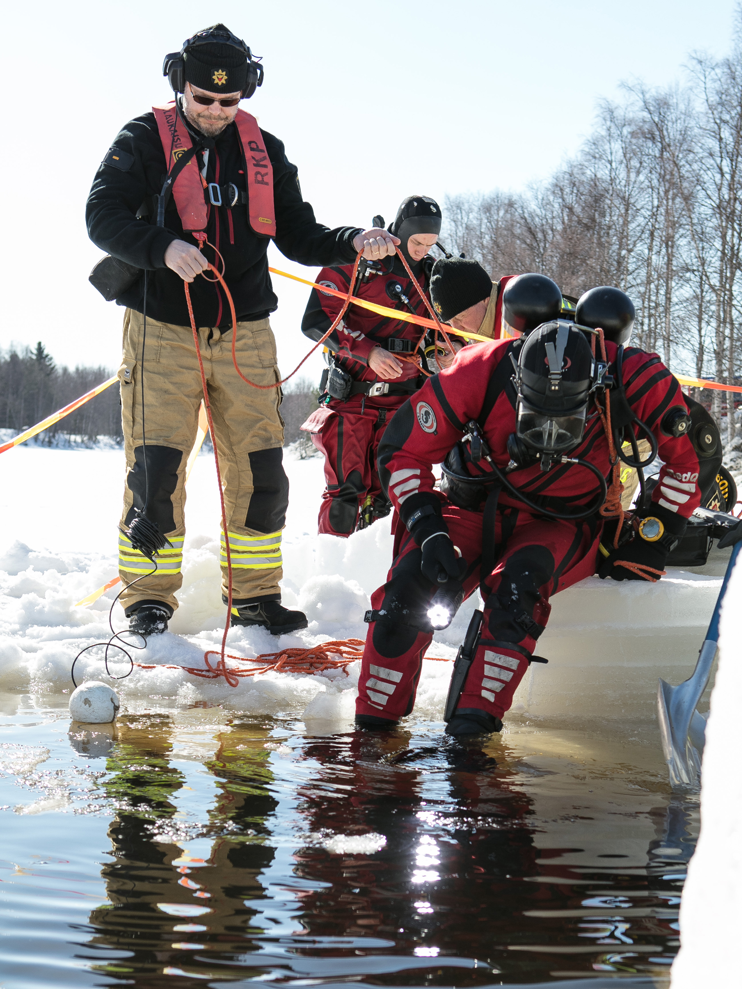 Myöhemmin dokumentoimme myös pelastajien työtä ja arkea. Kuvaajamme olivat pelastajien mukana useissa harjoituksissa ja näistä kuvista koostettiin asiakkalle pelastajien tehtäviä kuvaava kuvapankki. Kuvapankin kuvia käytetään pelastuslaitoksen viestinnässä ja toiminnan esittelyssä yhteistyökumppaneille.