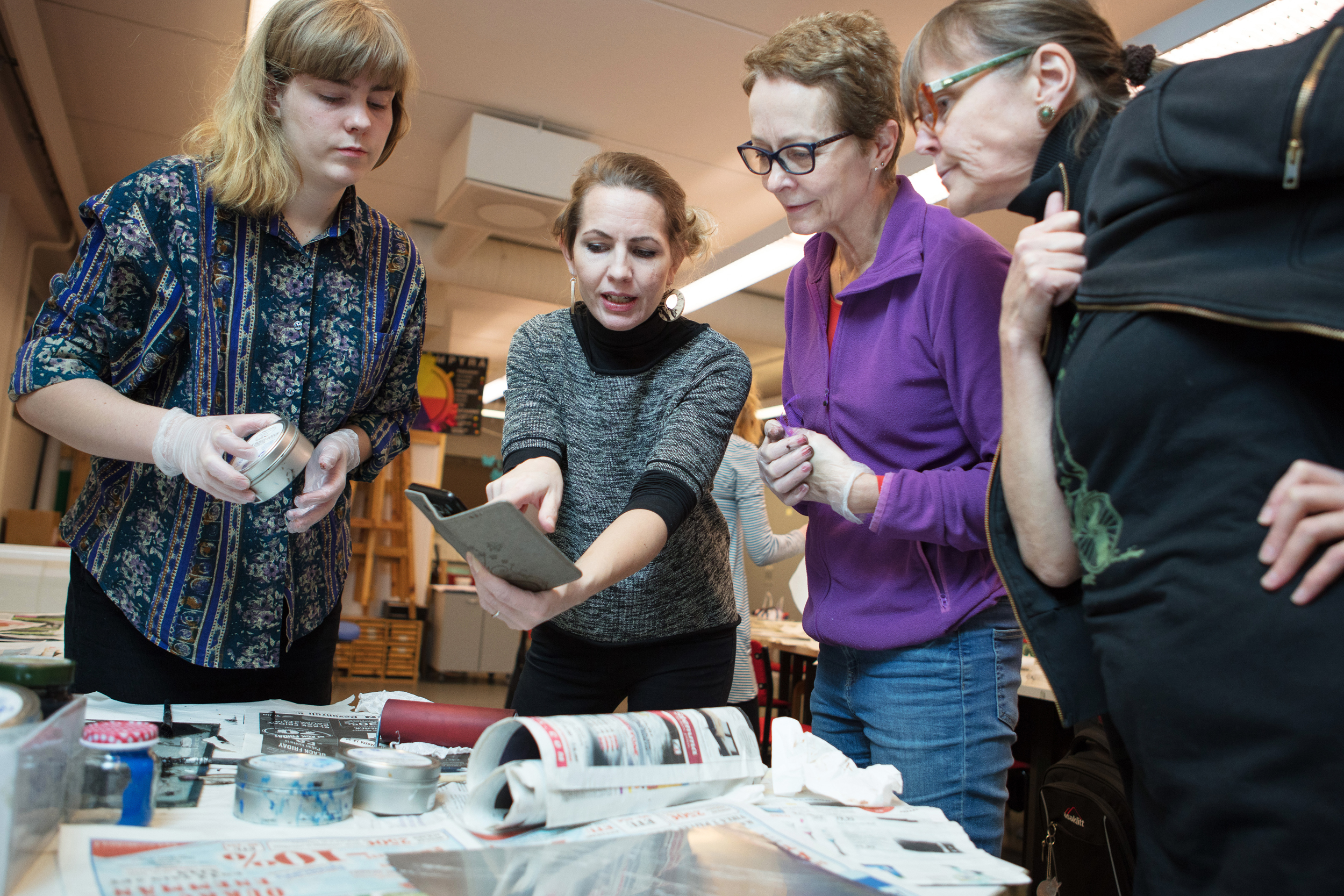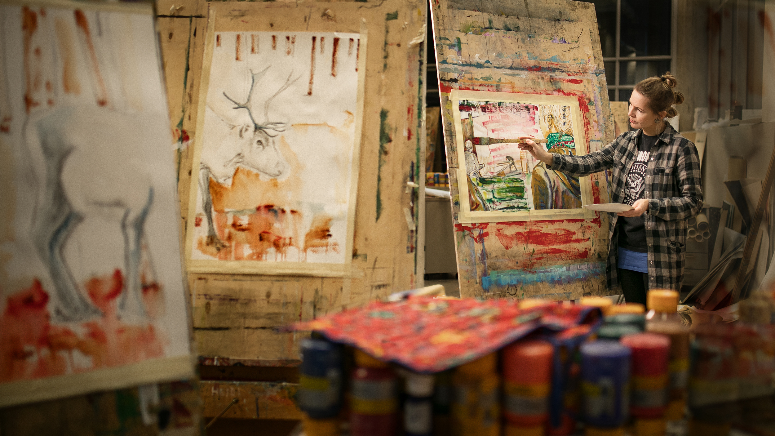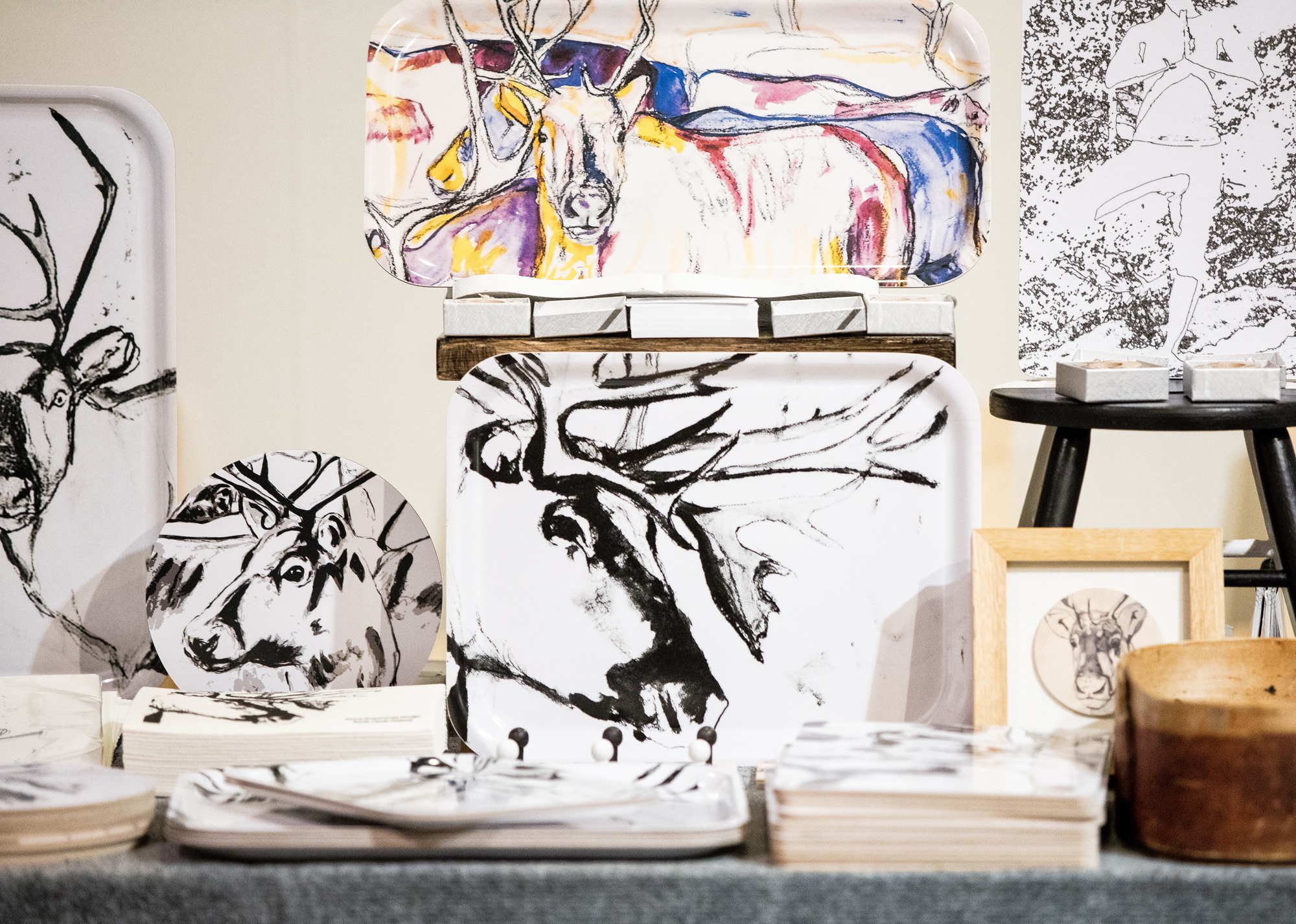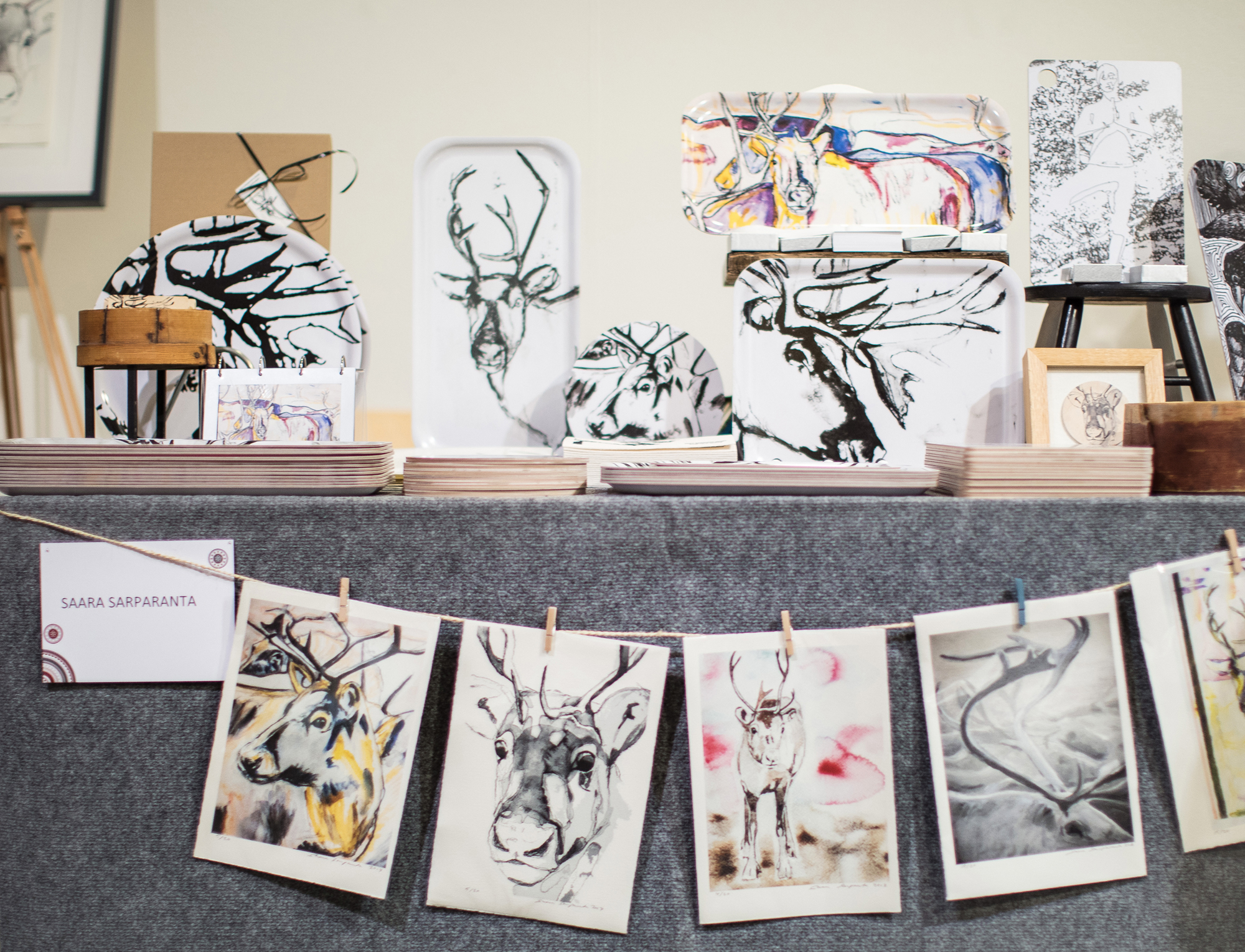Rovaniemeläinen taiteilija ja taiteenopettaja Saara Sarparanta halusi kuvia taiteilijaprofiilinsa visualioimiseksi. Kuvasimme taiteilijasta henkilökuvia ateljeessa ja dokumentoimme hänen opetustiloissa. Lisäksi kuvasimme hänen tekemiään taidekäsityötuotteita Arktisilla markkinoilla.